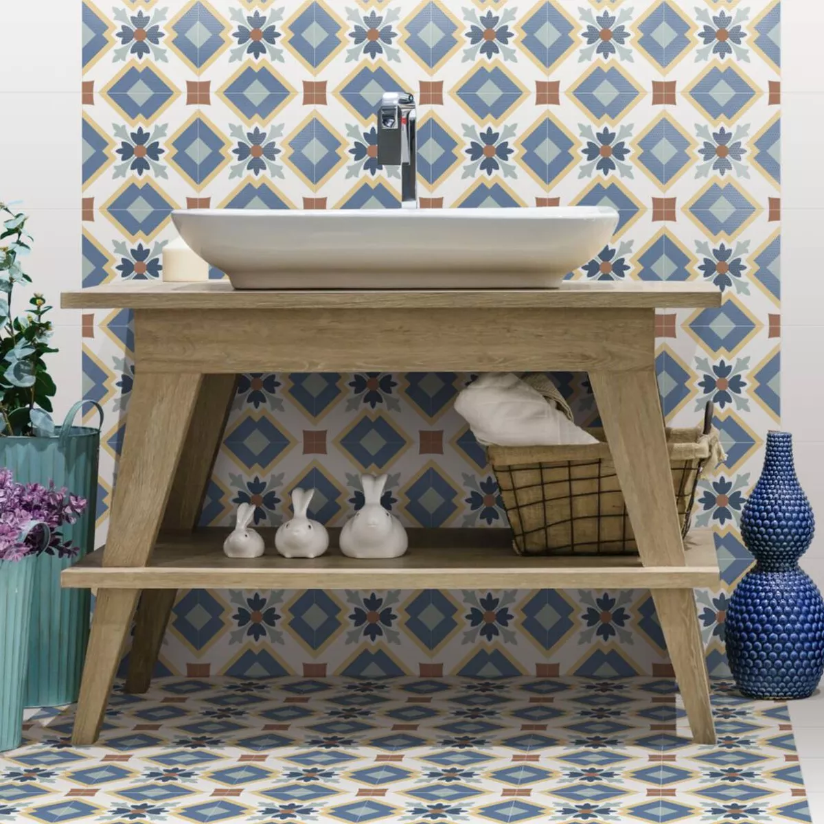 С разнообразието си от цветове – синьо, жълто, кафяво и бяло – порцелановите подови плочки Bucharest допълват всеки интериорен дизайн и създават хармонична атмосфера. Освен това са подходящи за подово отопление, като по този начин предлагат допълнителен комфорт.
