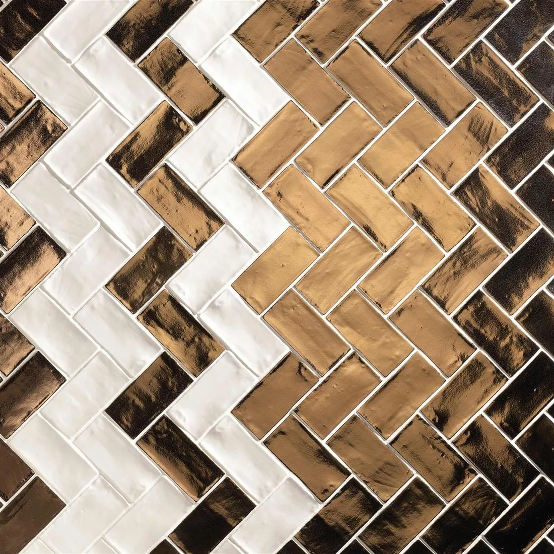 Ръчно изработените стенни плочки Algiers в злато придават на вашите стени луксозен и бляскав блясък. Тези каменинови плочки впечатляват със своята лъскава, вълнообразна повърхност, която отразява светлината по очарователен начин и придава на стените богата текстура. Ръчно изрязаните естествени ръбове и остъклените повърхности подчертават артистичното майсторство и изключителния характер на всяка плочка.