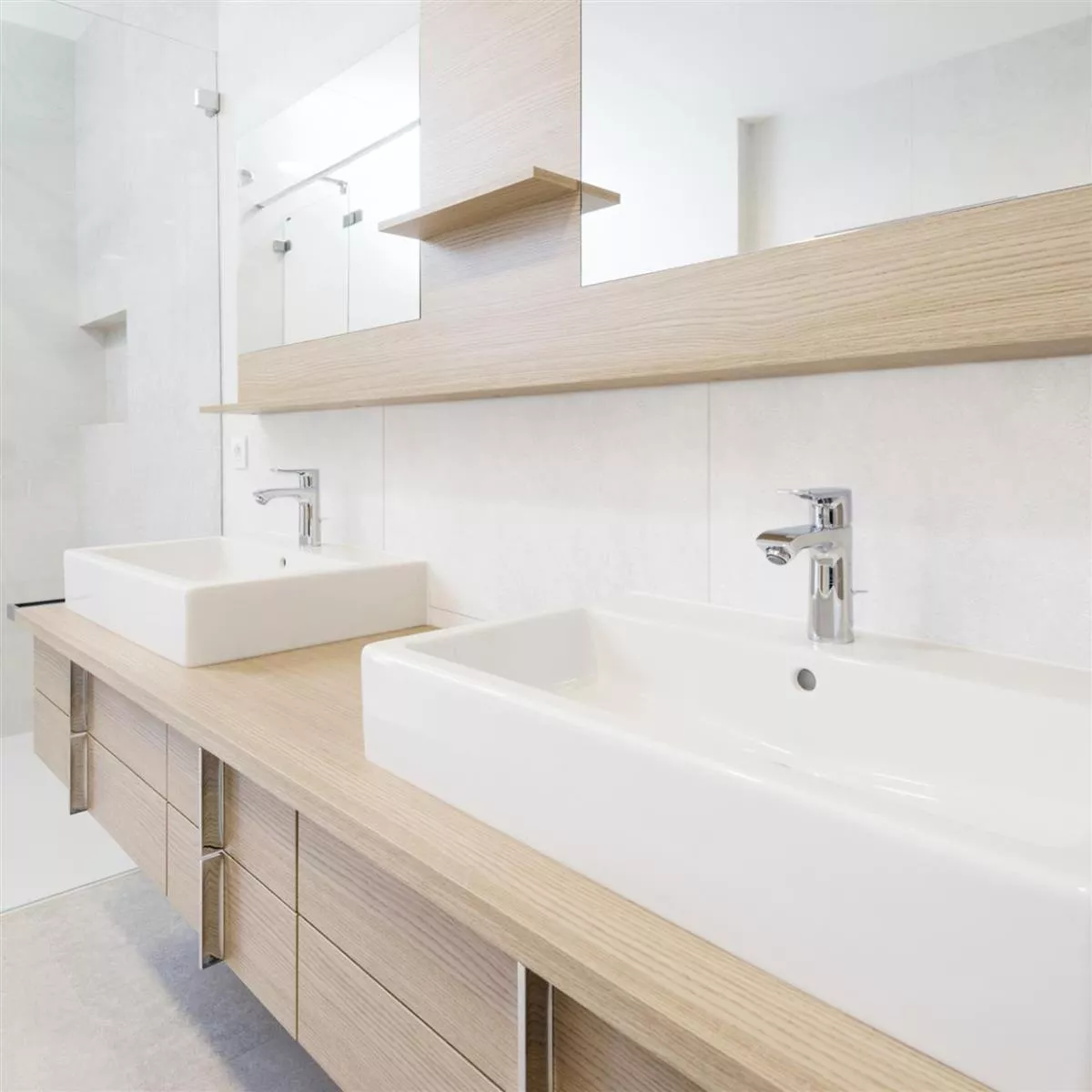 В обобщение, има два основни фокуса на стенните плочки Tirol за баня. Освен атрактивния външен вид впечатлява и качеството. Като плочки за баня, правоъгълните, продълговати плочки разтягат помещението, правят банята да изглежда по-голяма и освен това са матови. Благодарение на коригираната характеристика можете да очаквате високо ниво на точност и прецизност, което улеснява работата с плочките за баня и тесните фуги.