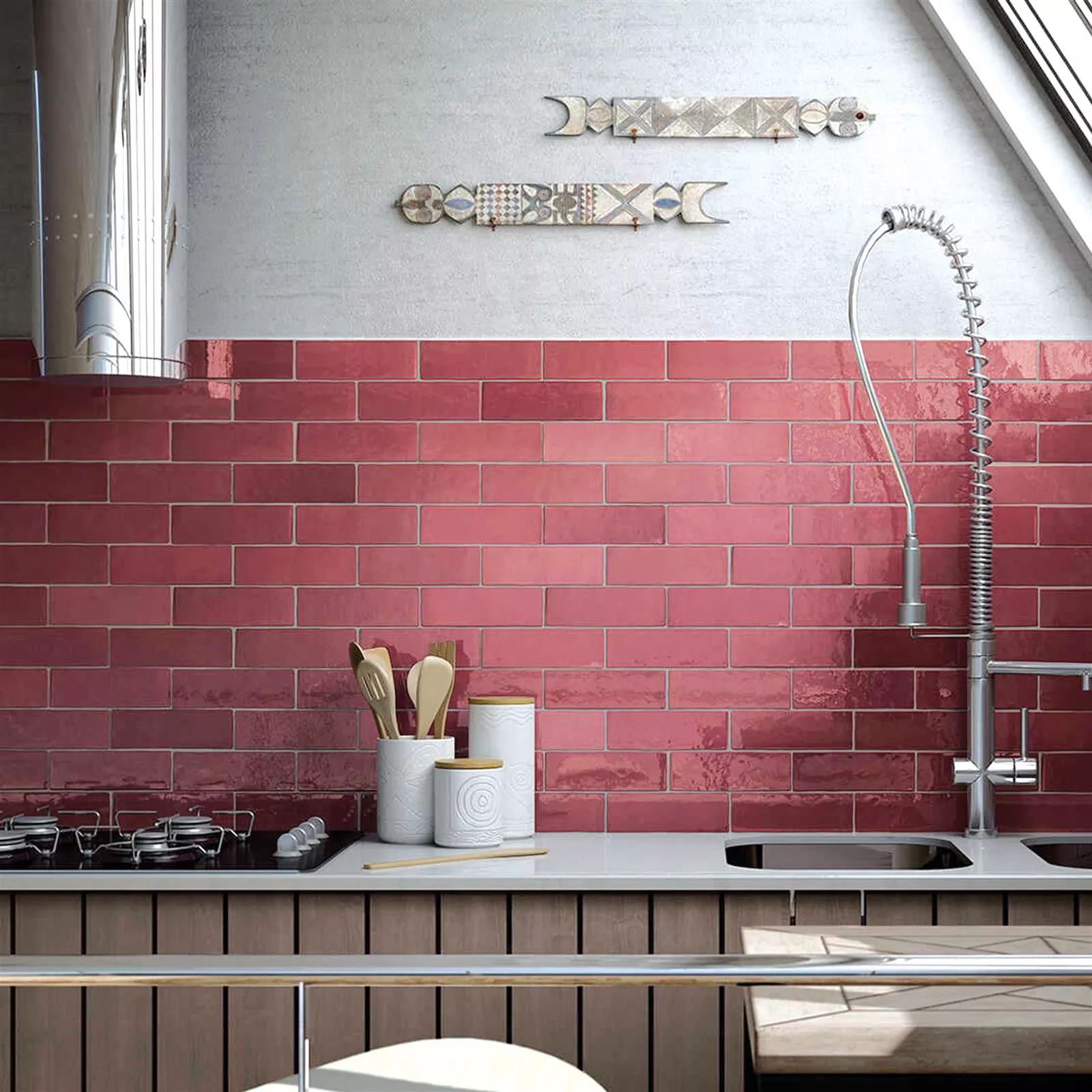 Изберете стенната плочка Concord в червено и създайте отличителен акцент в дома си с нейното лъскаво покритие и уникален вид на вълни.