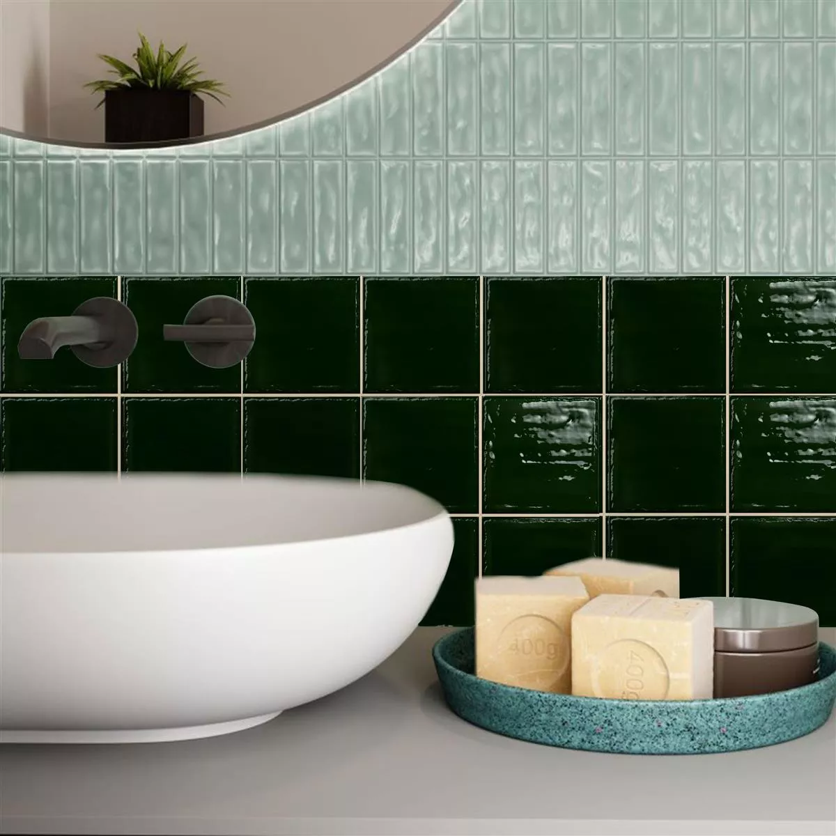 Стенните плочки Verbania в тъмно зелено с размери 20x20 см и дебелина 7,8 мм придават винтидж вид на вашите стаи. Гланцовото покритие и тъмнозелената цветова схема създават елегантна атмосфера.