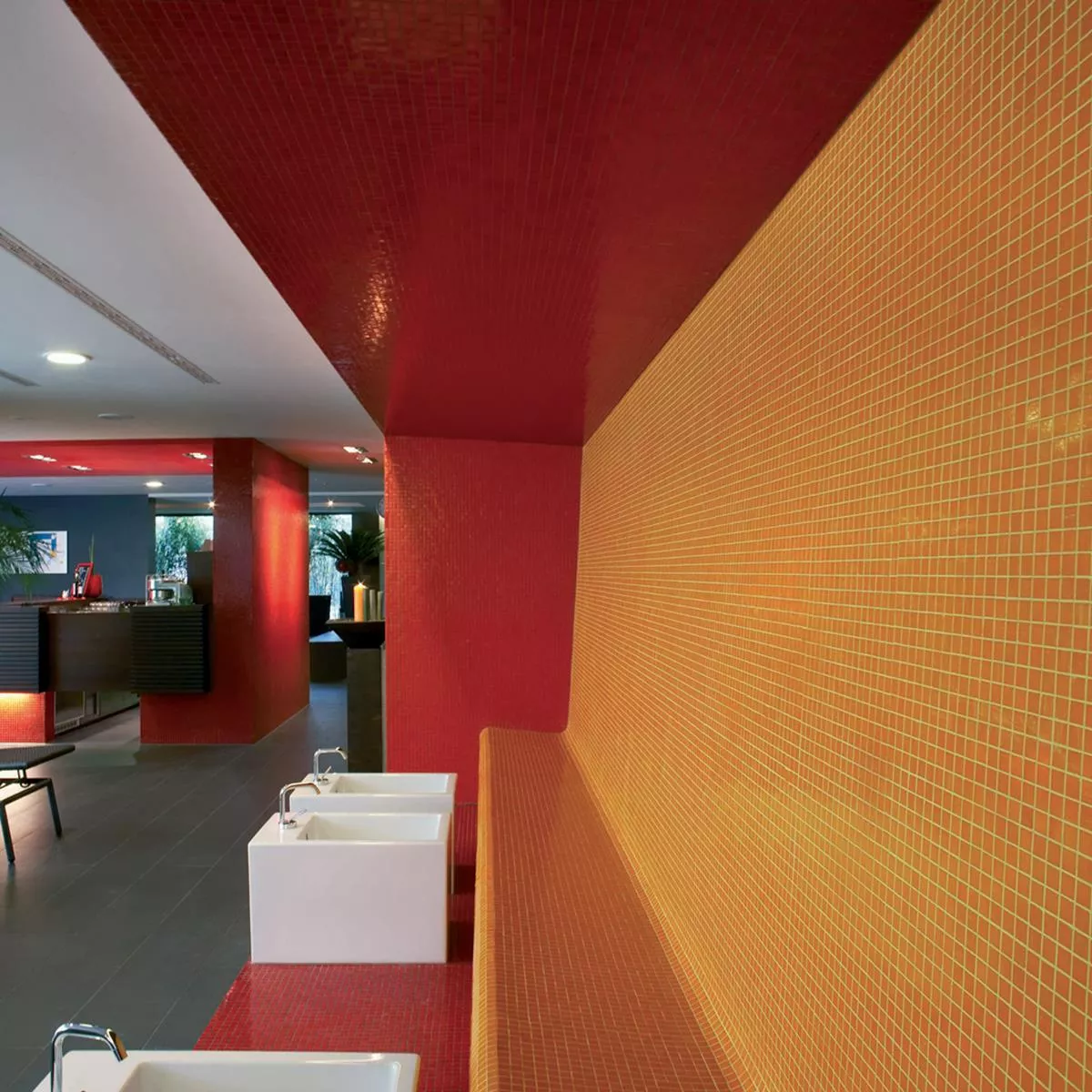 В и около басейните, където плочките са постоянно изложени на влага, те осигуряват необходимата устойчивост.