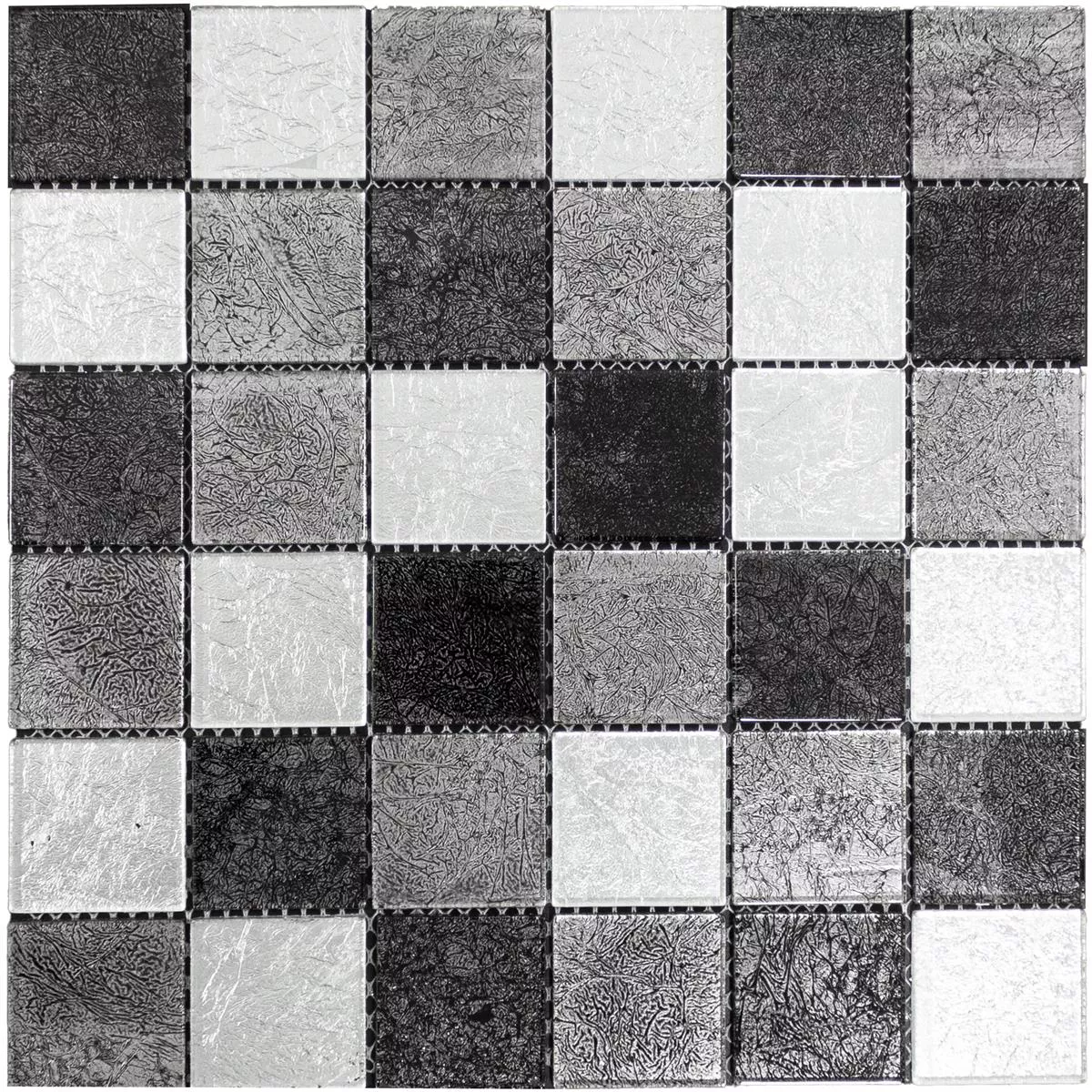 Cтъклена Mозайка Плочки Curlew Черно Сребро Q48 4mm