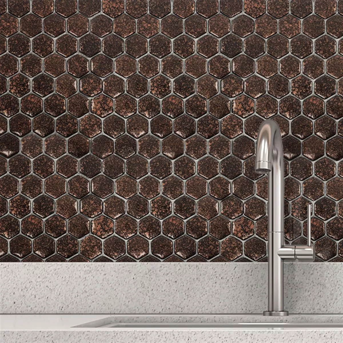 Cтъклена Mозайка Плочки Leopard Шестоъгълник 3D Бронз