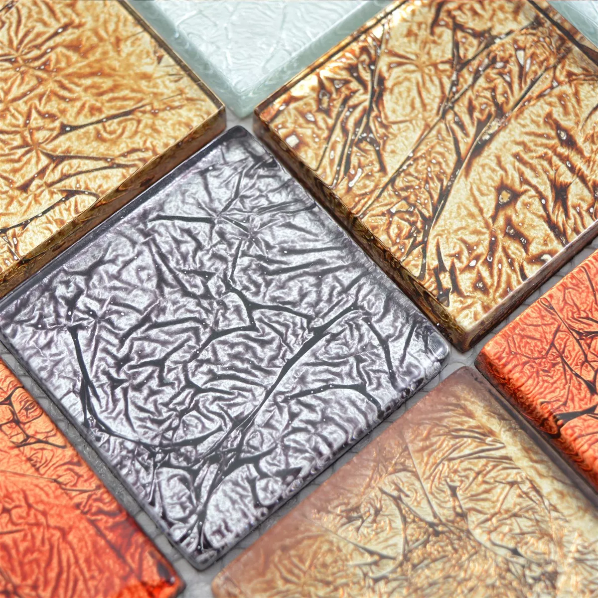 Mодел от Cтъклена Mозайка Плочки Curlew Червен Kафяво Сребро Kвадрат