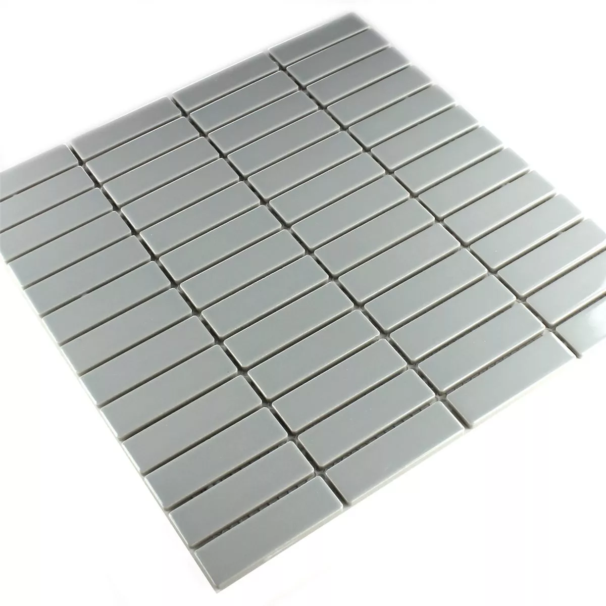 Тази сива обикновена керамична мозаечна плочка във формата на пръчка е идеална за креативен дизайн и декоративно облицоване на стени, което означава, че са възможни индивидуални дизайнерски опции в бани, кухни, всекидневни, басейни, на колони и в уелнес зоната.