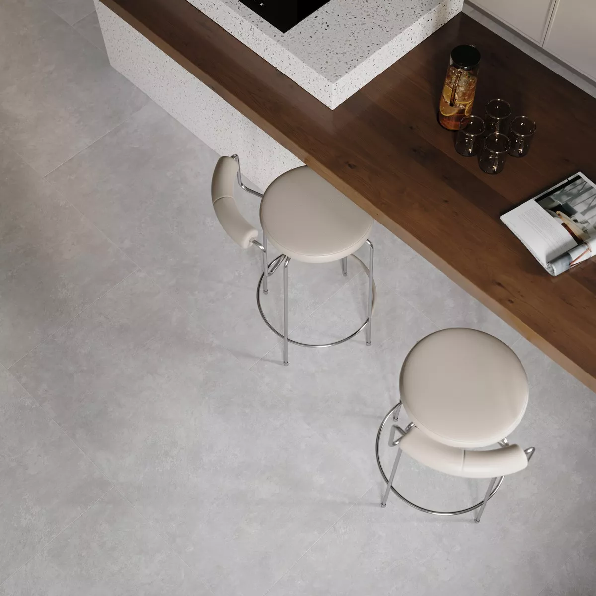 Порцелановите подови плочки Jamaica са перфектният елемент за вашия интериор. С размери 60 см x 60 см, те са идеални за кухни, бани, сервизни помещения, складови помещения и дневни. Сивият им цвят и матовата им повърхност придават метален вид на всяка стая. Благодарение на специалните си свойства, плочките са подходящи за подово отопление, а също така са противоплъзгащи и водоустойчиви. Това прави плочките Jamaica идеални и за използване като стена за душ, под за душ и стена за гараж.