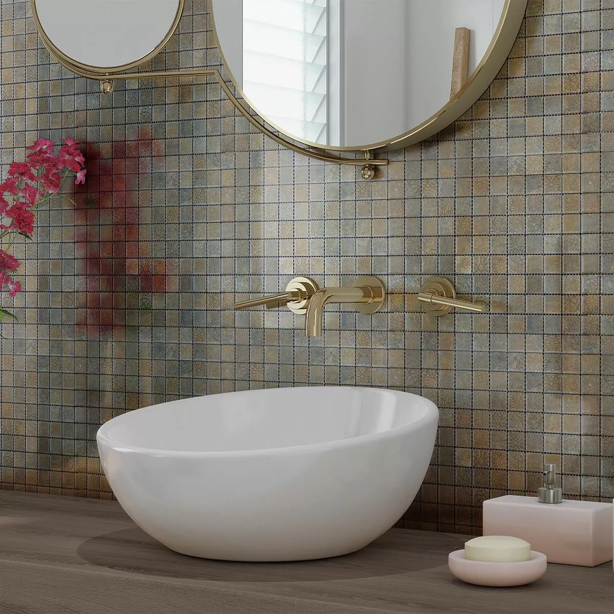Ширината на фугата от 2 мм осигурява чист и равномерен вид на фугата, който оптимално показва металния ръждивокафяв вид. С мозаечната плочка Lusco вие избирате уникална комбинация от естетика и функционалност, която създава отличителна визия във всяка стая.