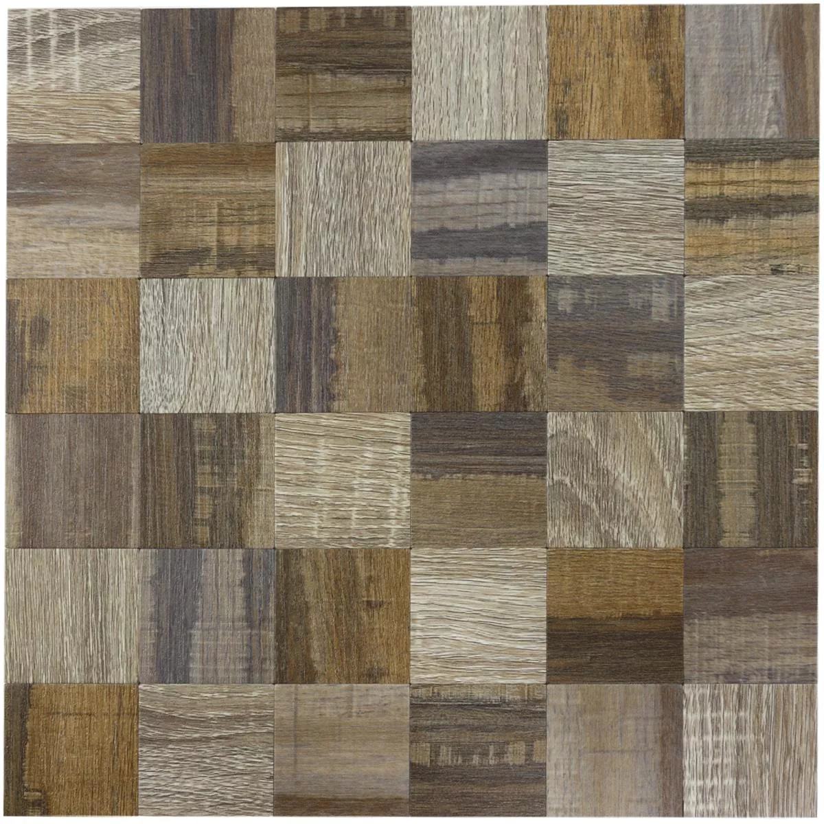 Mетал Mозаечна Плочка Cамозалепващ Bид Hа Дърво Skypia Kафяво Бежово
