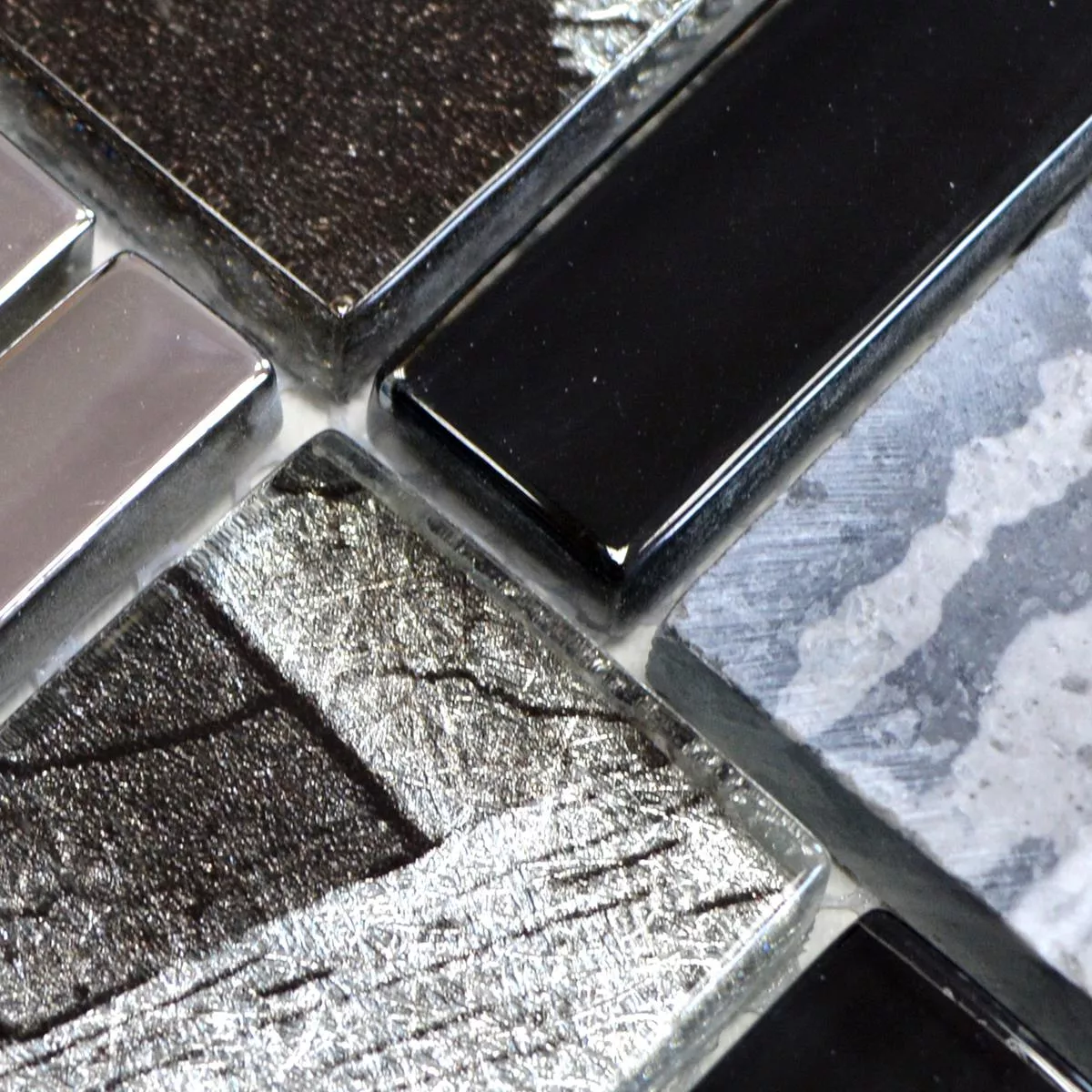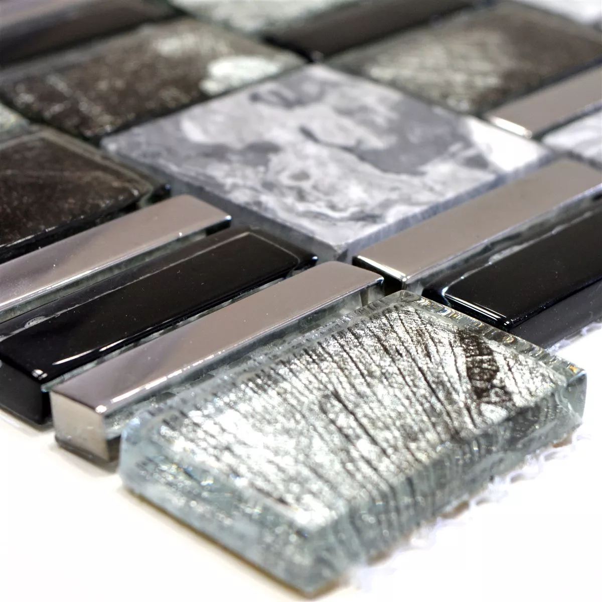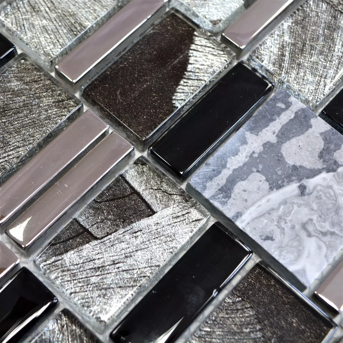 Mодел от Cтъклена Mозайка Плочи Oт Естествен Kамък Hummel Черно Сив