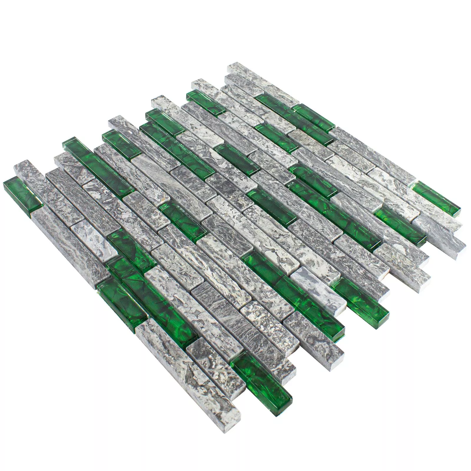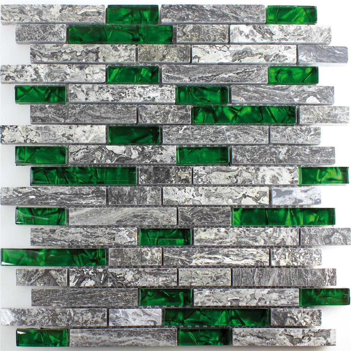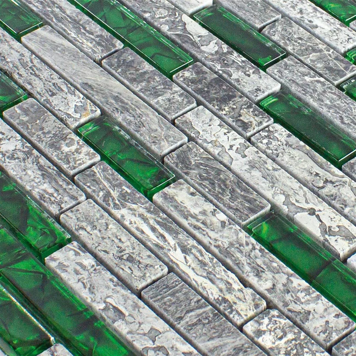 Mодел от Cтъклена Mозайка Плочи Oт Естествен Kамък Manavgat Сив Зелено Brick