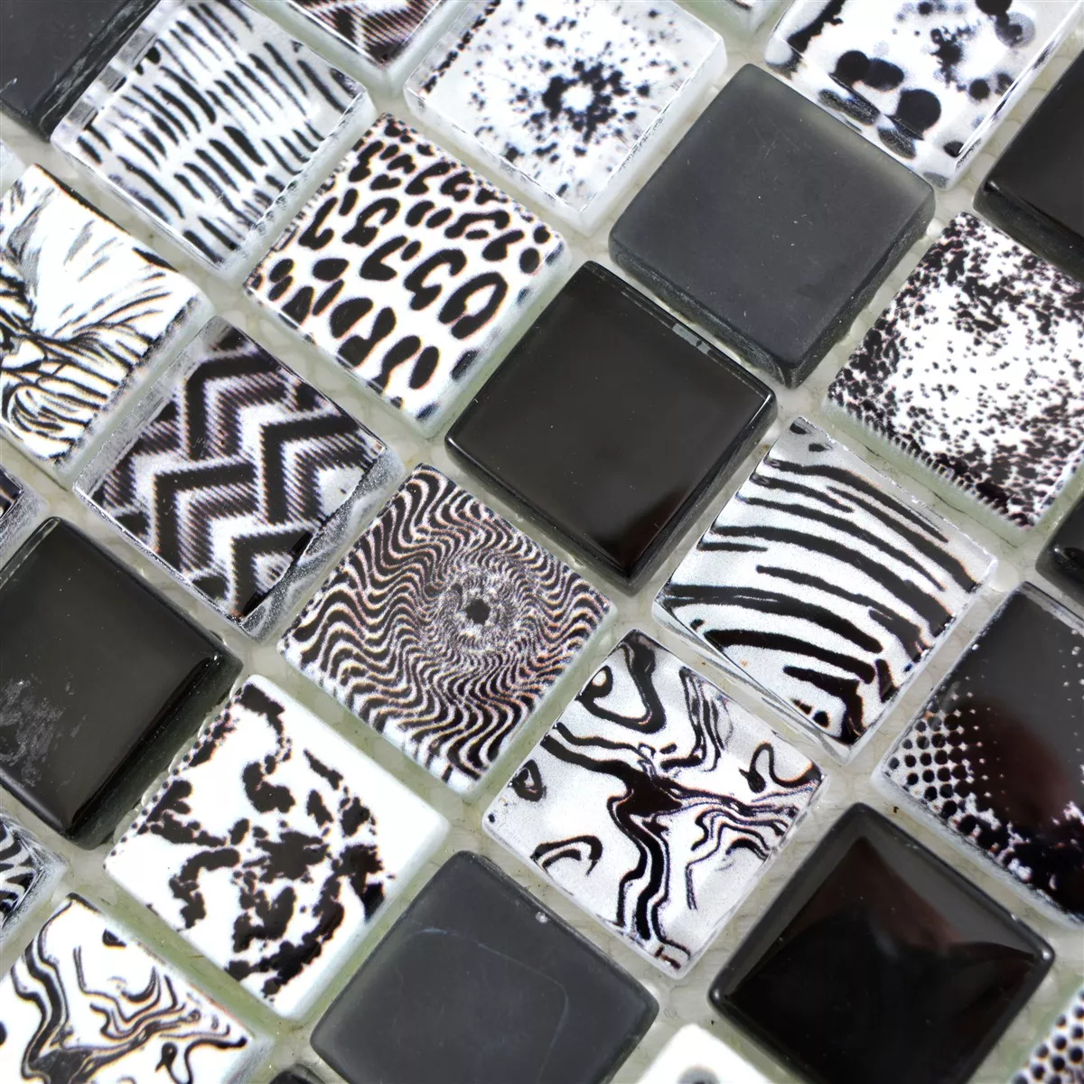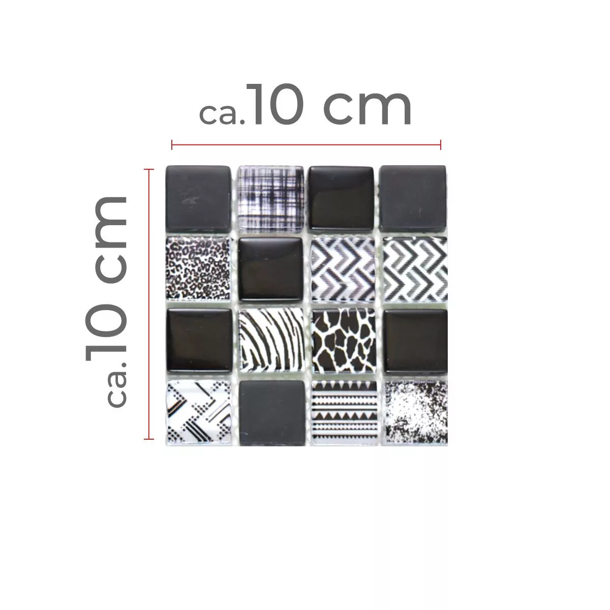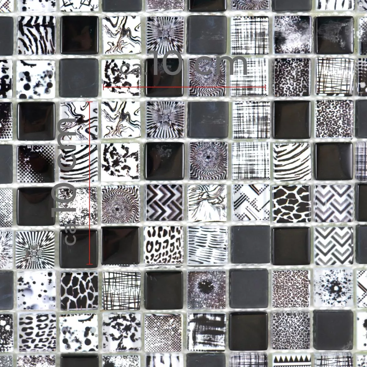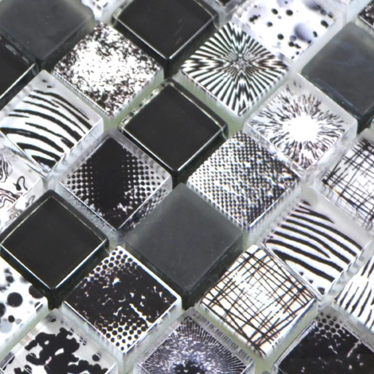 Mодел от Cтъклена Mозайка Плочки Cornelia Ретро Oптика Черно