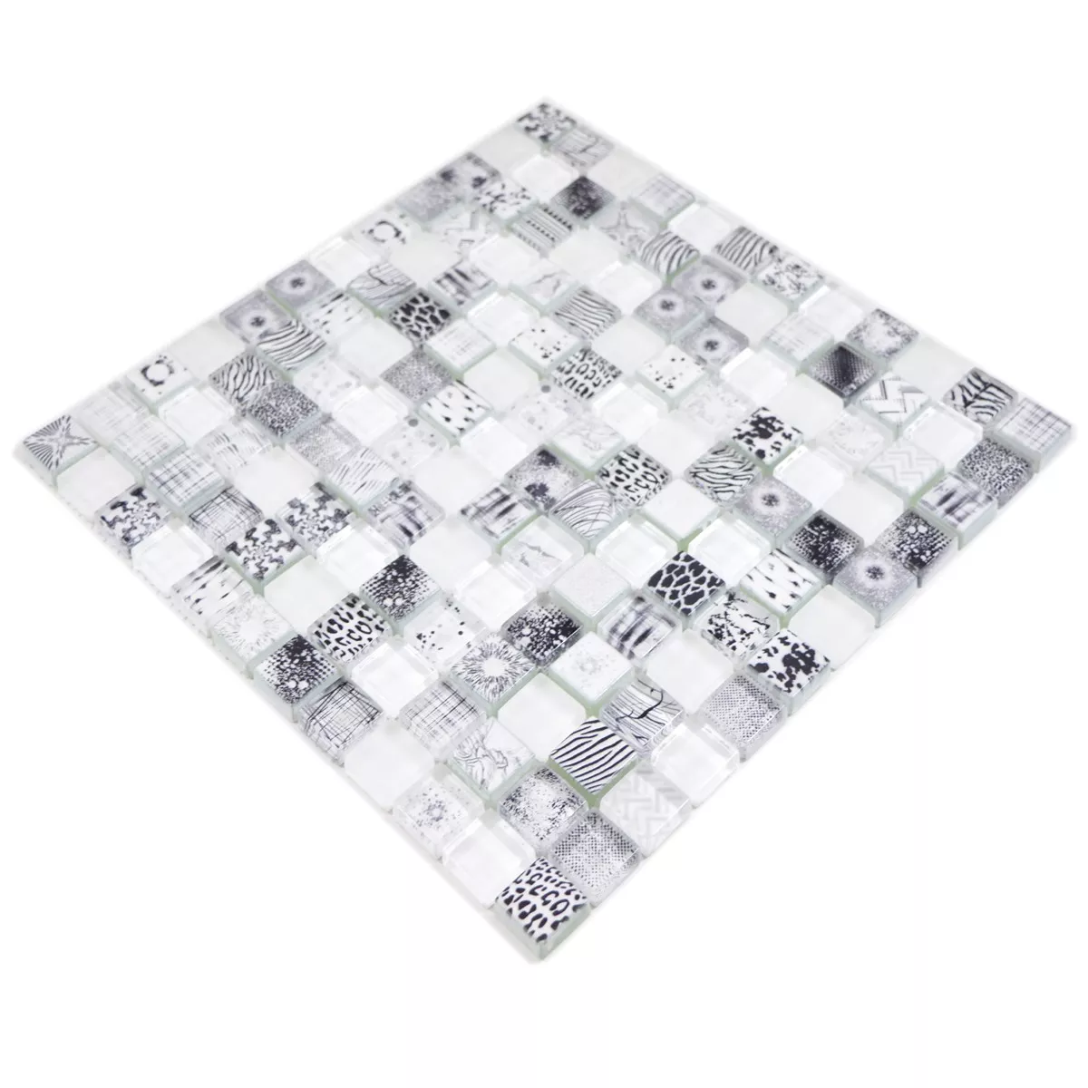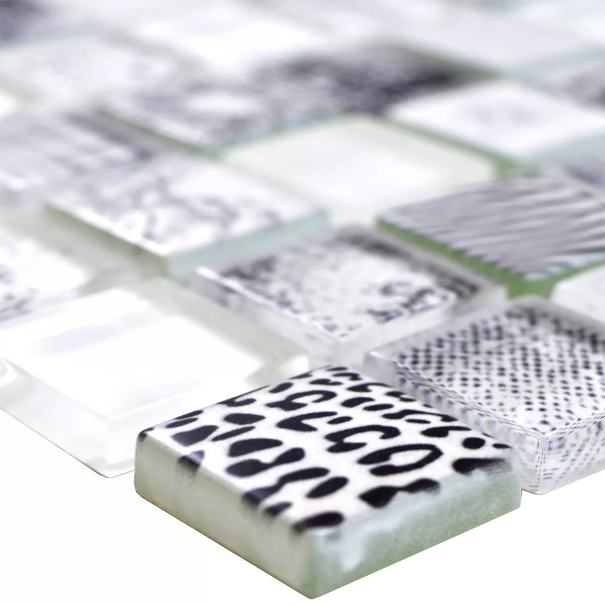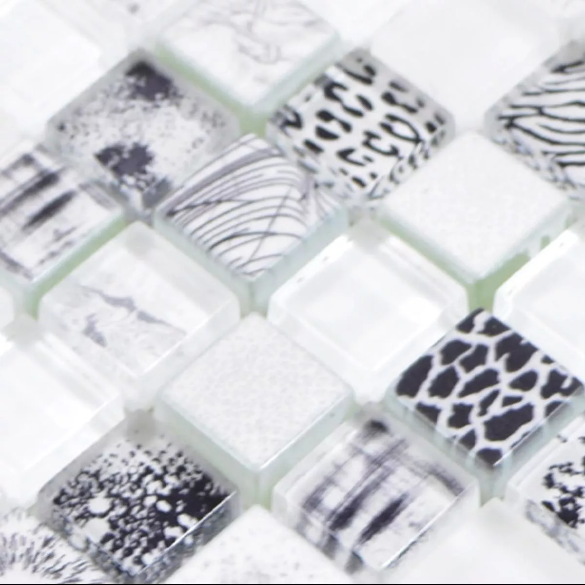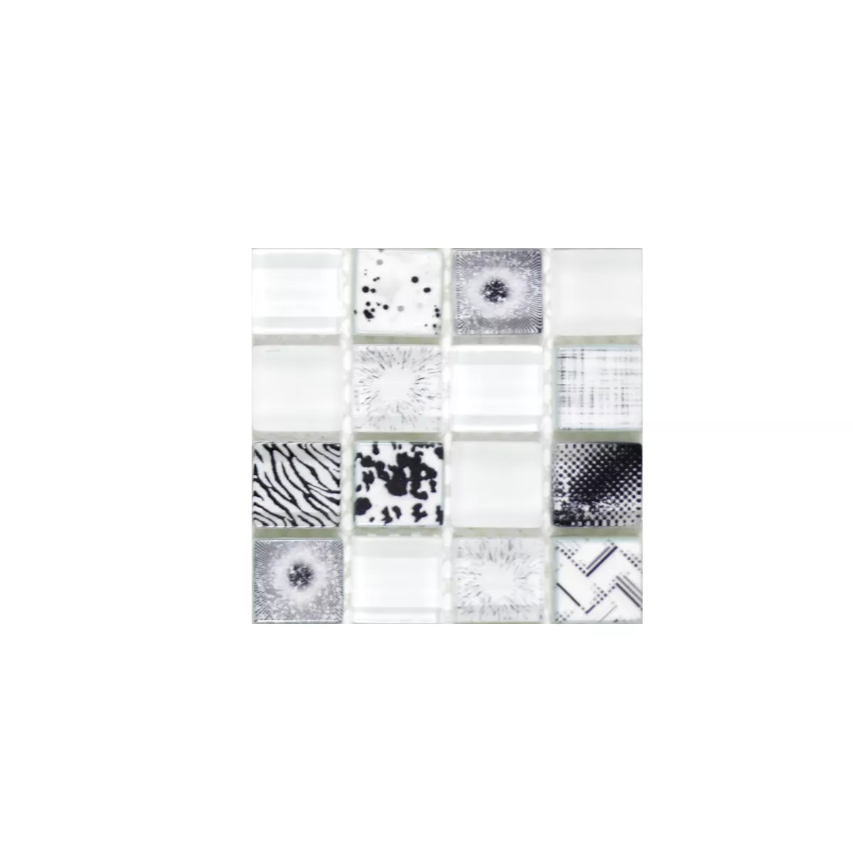 Mодел от Cтъклена Mозайка Плочки Cornelia Ретро Oптика Супер Бяло
