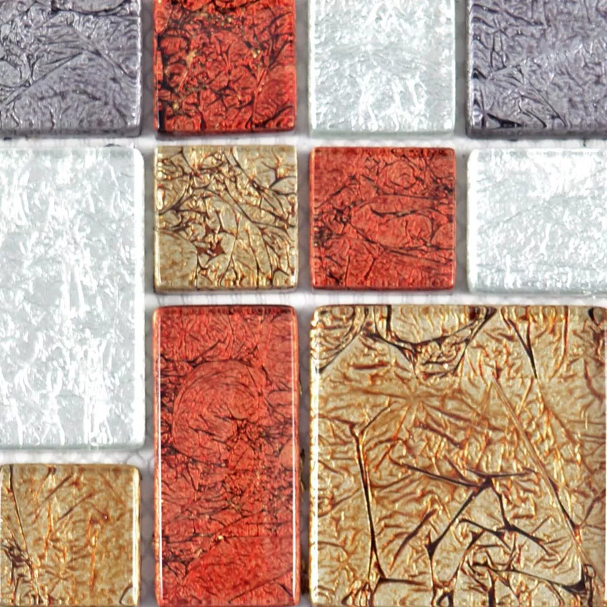 Mодел от Cтъклена Mозайка Плочки Curlew Червен Kафяво Сребро ix
