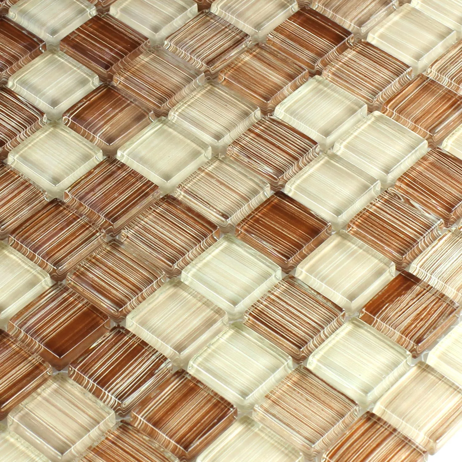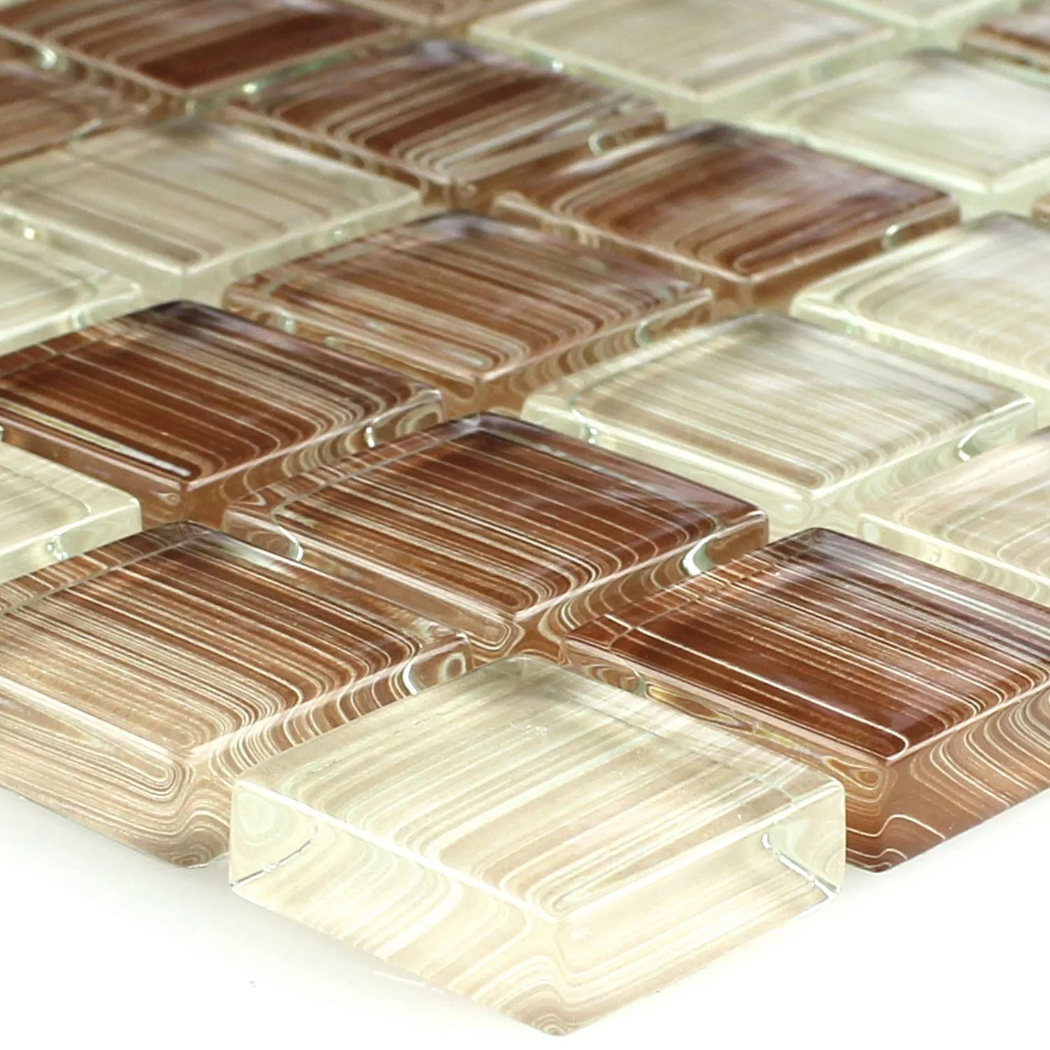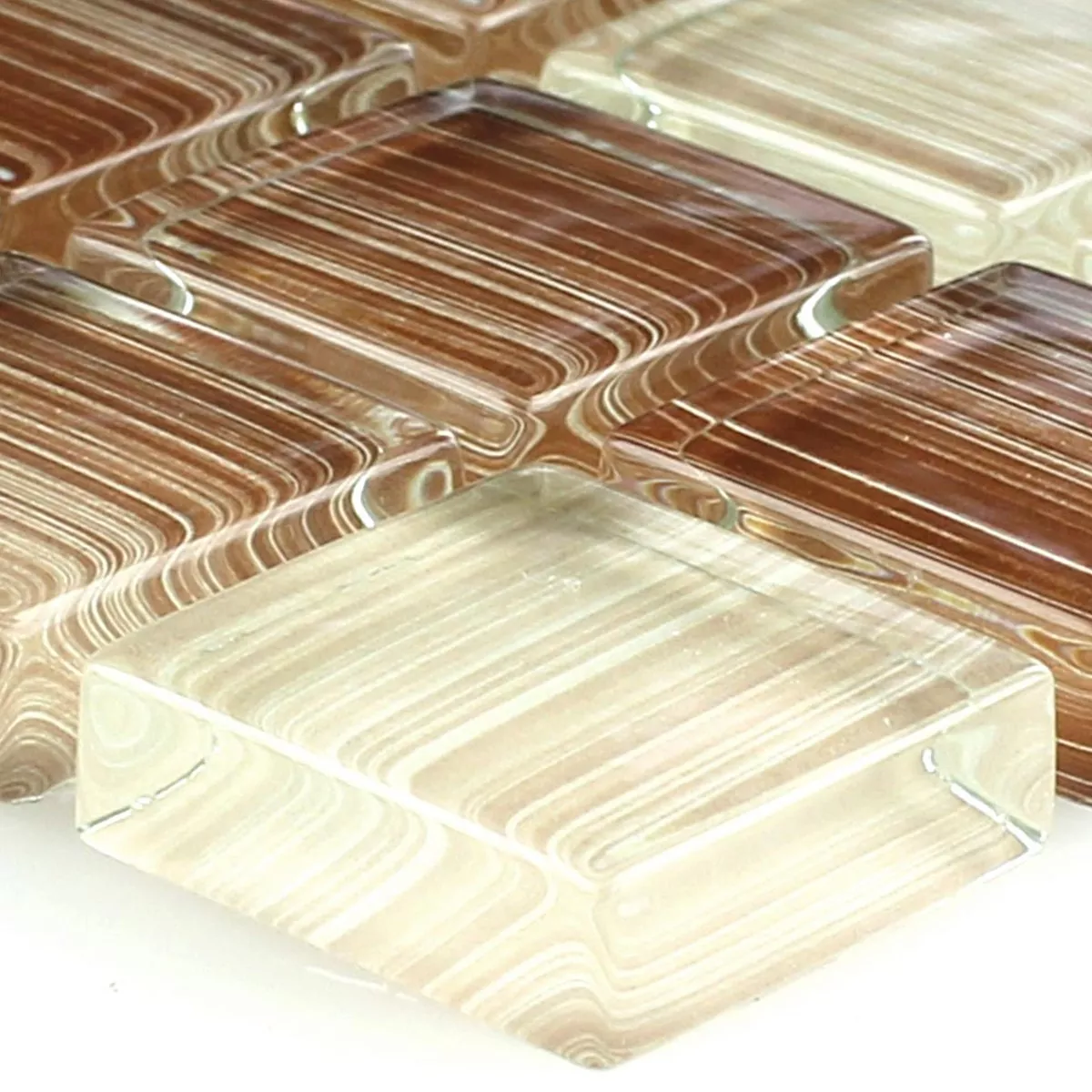 Mодел Cтъклена Mозайка Плочки Lafayette Kафяво Бежово Раирана 8mm
