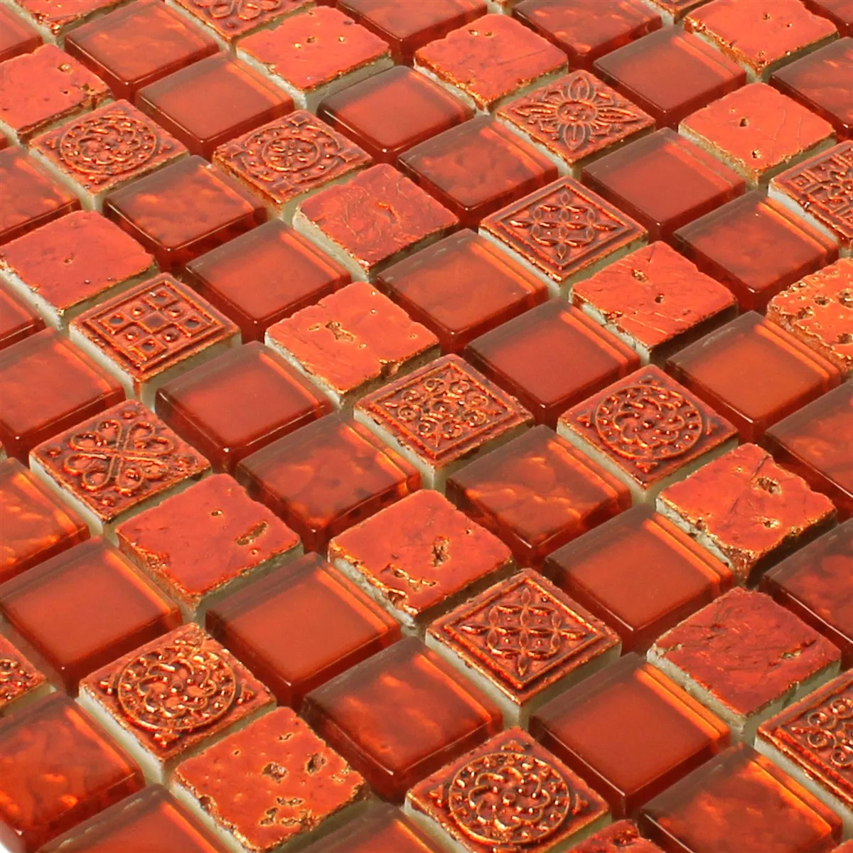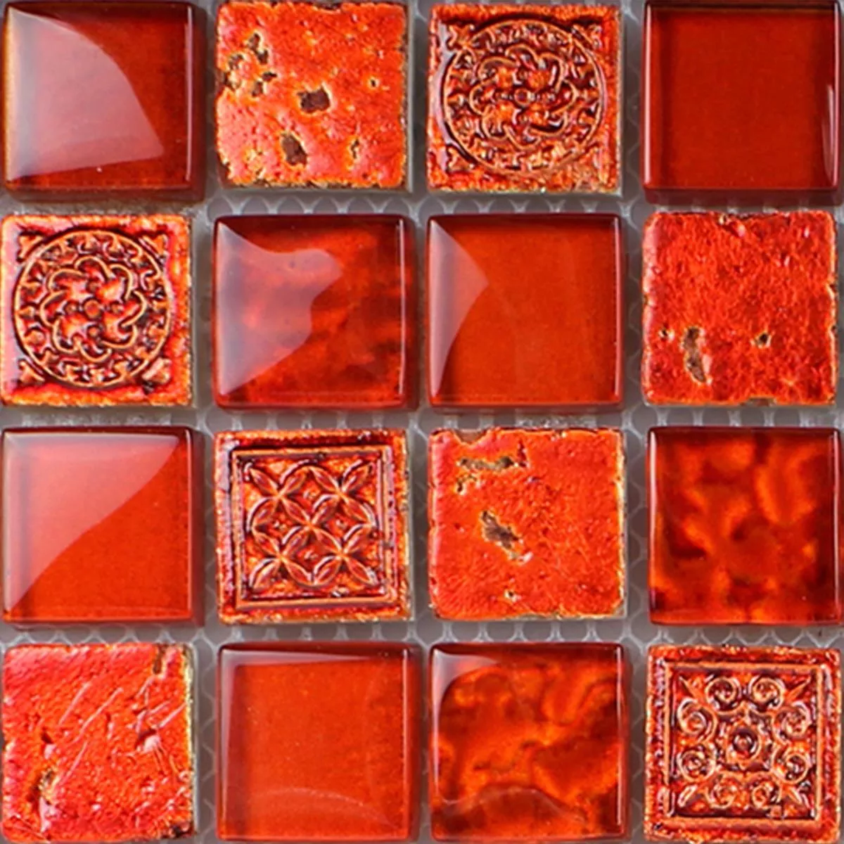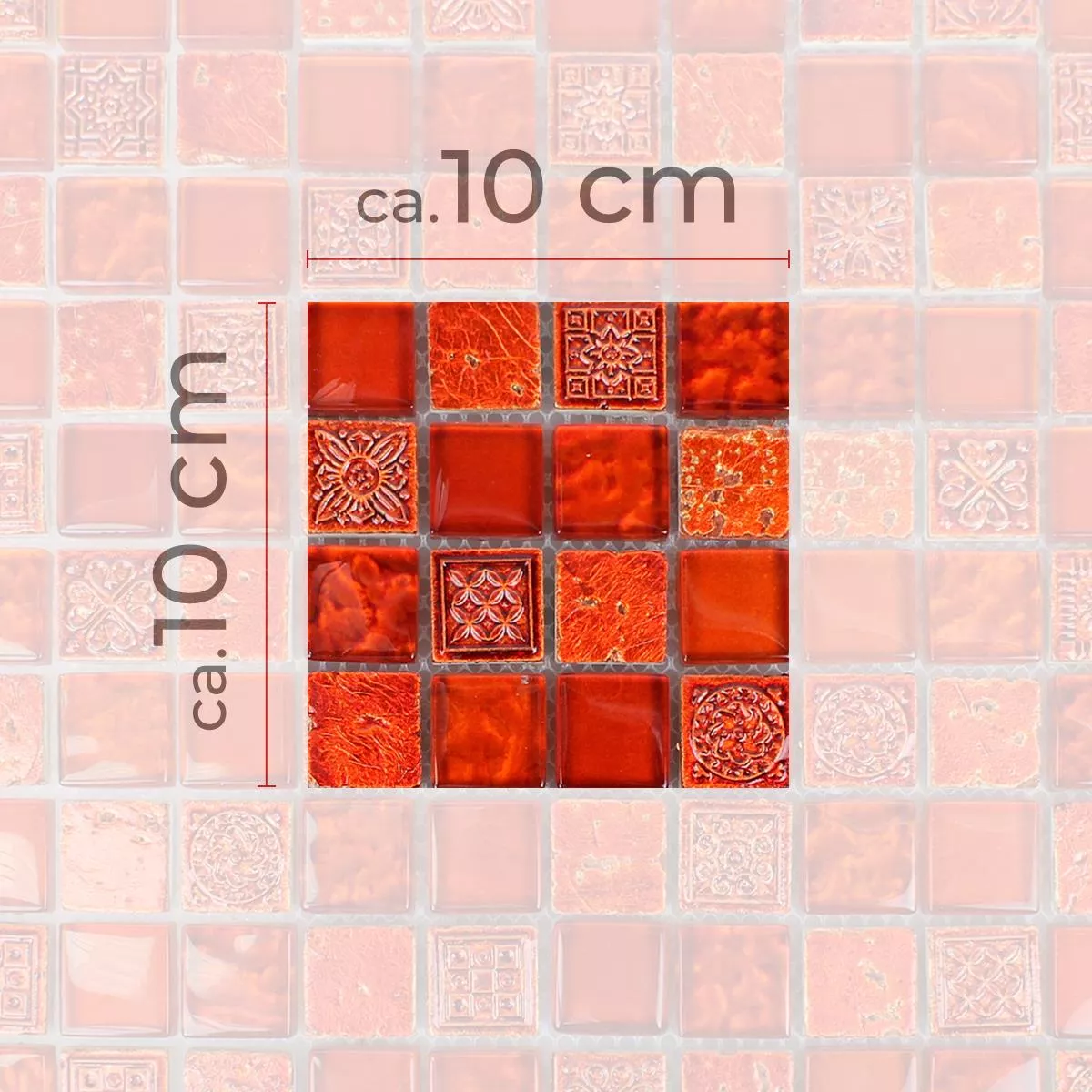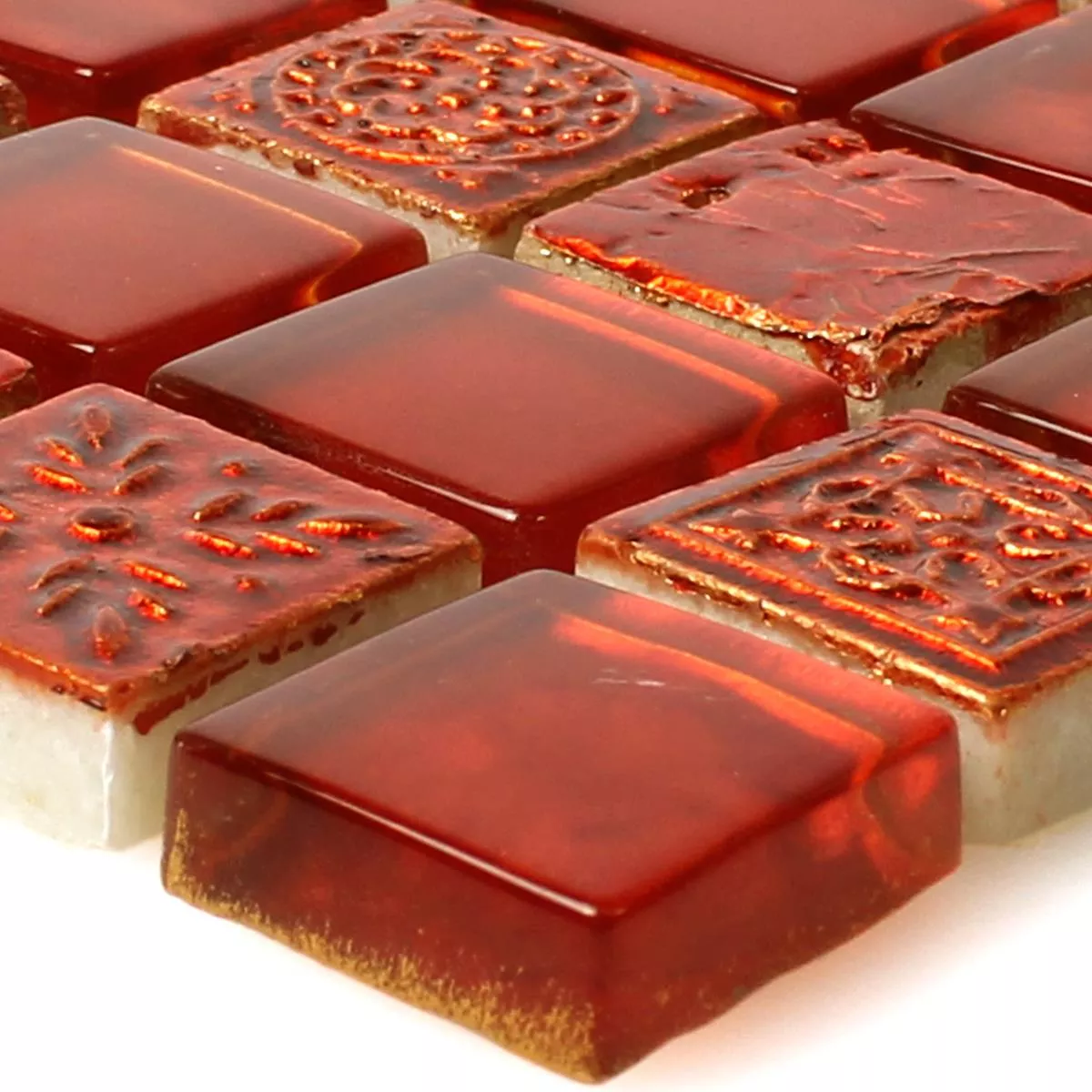 Mодел от Mозаечни Плочки Georgia Стъклена Чаша Естествен Kамък Mix Червен