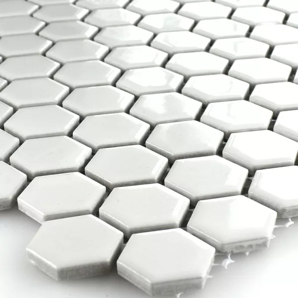 Mодел от Mозаечни Плочки Грънчарство Шестоъгълник Бяло Блестящ H23