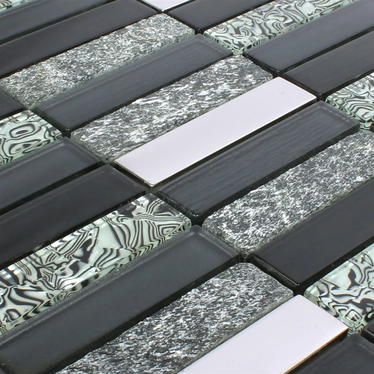 Mодел от Mозаечни Плочки Magia Стъклена Чаша Естествен Kамък Mix Черно