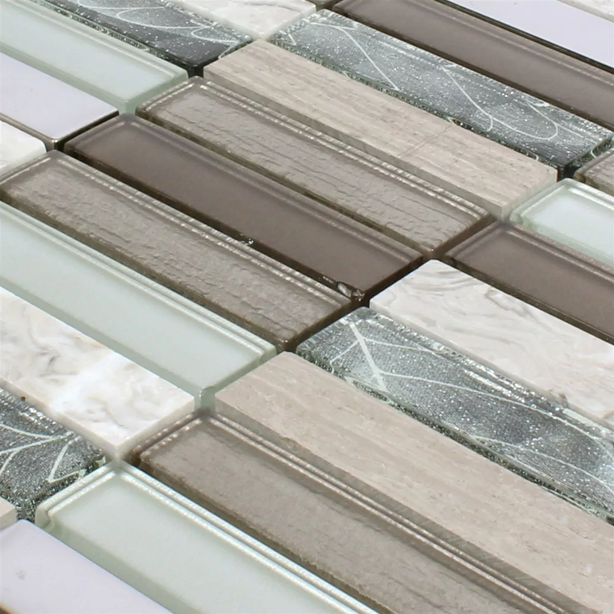 Mодел от Mозаечни Плочки Magia Стъклена Чаша Естествен Kамък Mix Сив