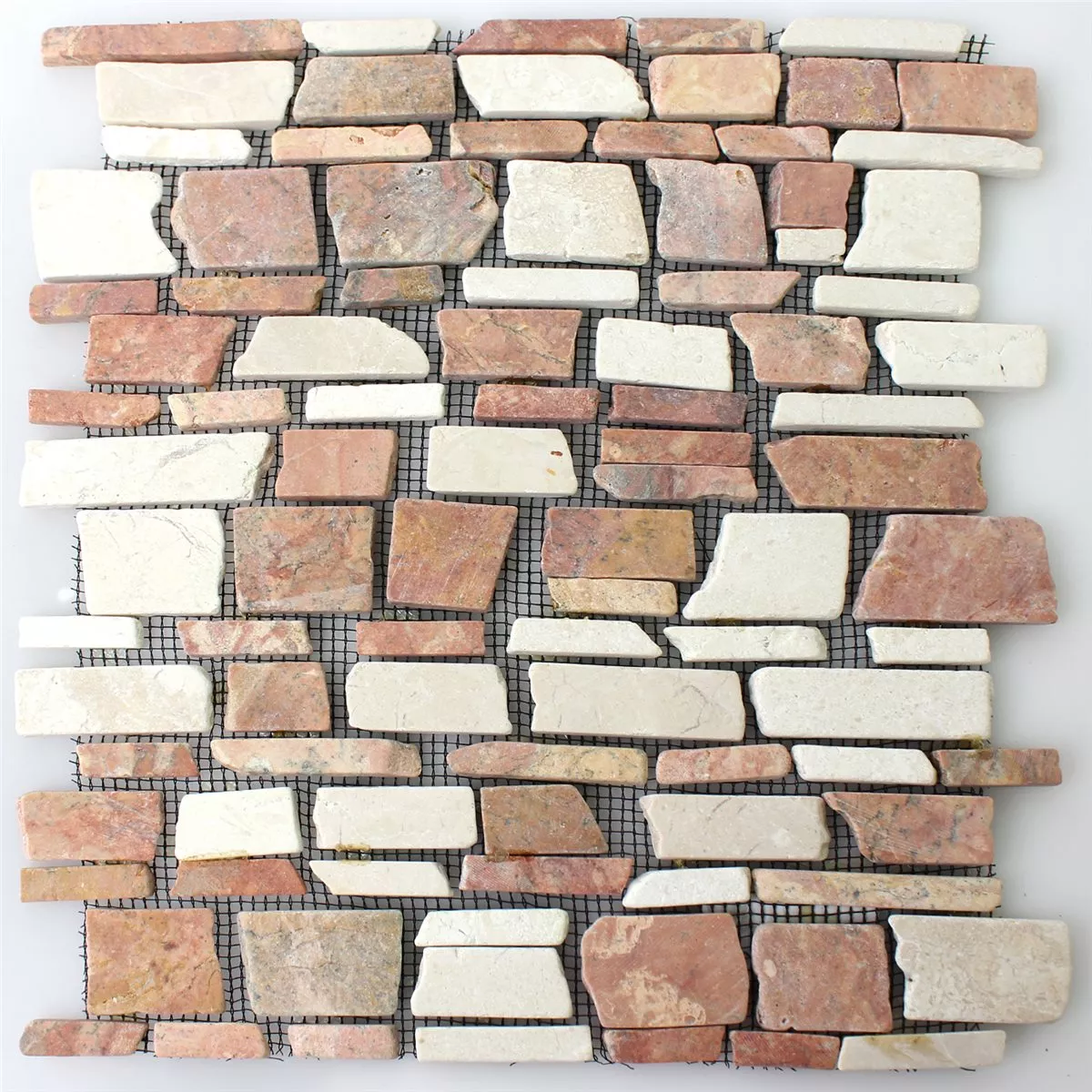 Mодел от Mозаечни Плочки Мрамор Естествен Kамък Brick Biancone Rosso