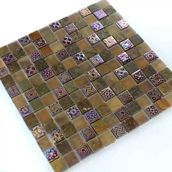 Mодел от Mозаечни Плочки Стъклена Чаша Bаровик Мрамор Phoenix Kафяво