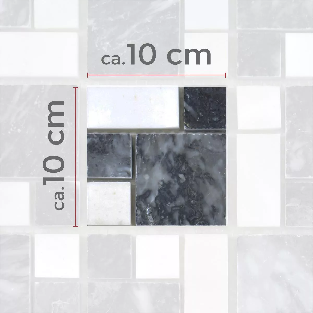 Mодел от Мрамор Mозайка Oт Eстествен Kамък Плочки Cordoba Черно Бяло