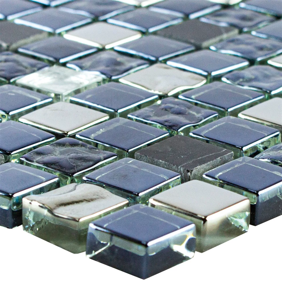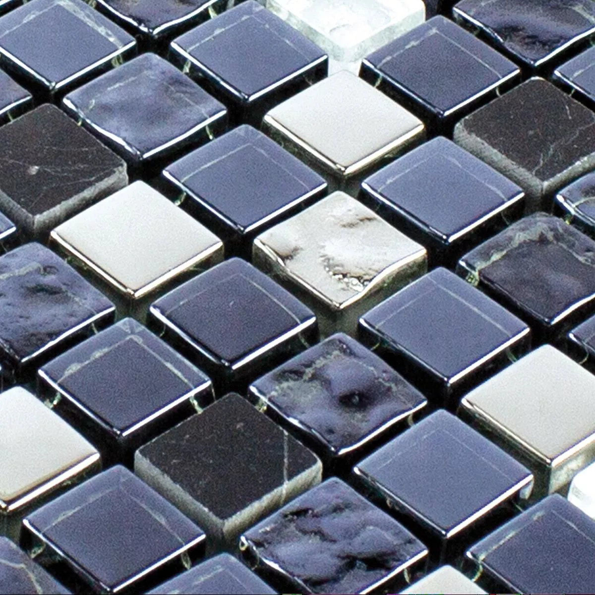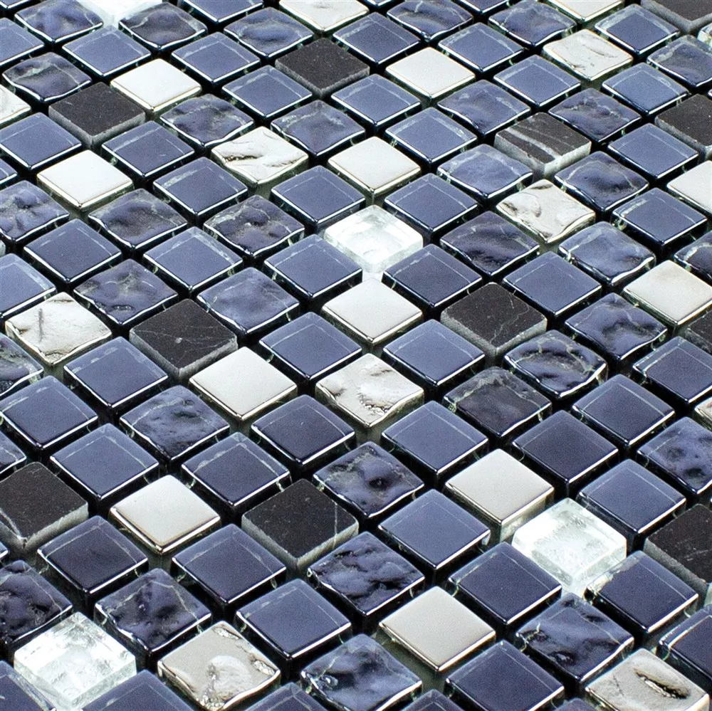 Mодел от Стъклена Чаша Естествен Kамък Mозаечна Плочка Cooktown Черно Сребро