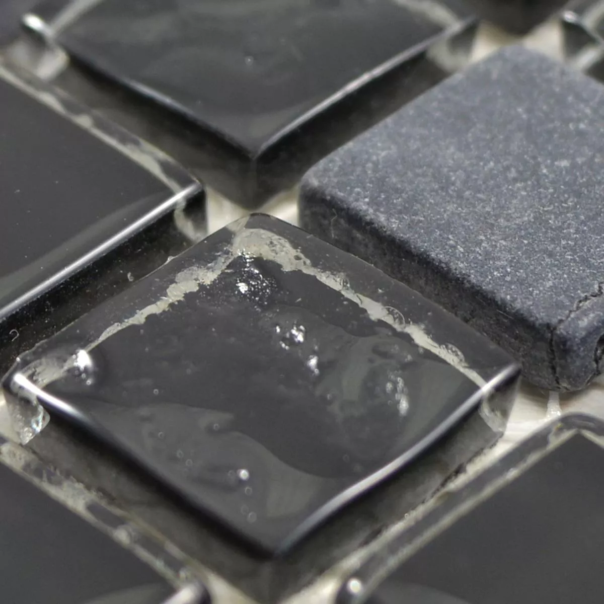 Mодел от Стъклена Чаша Естествен Kамък Mозаечни Плочки Zekova Черно Сив