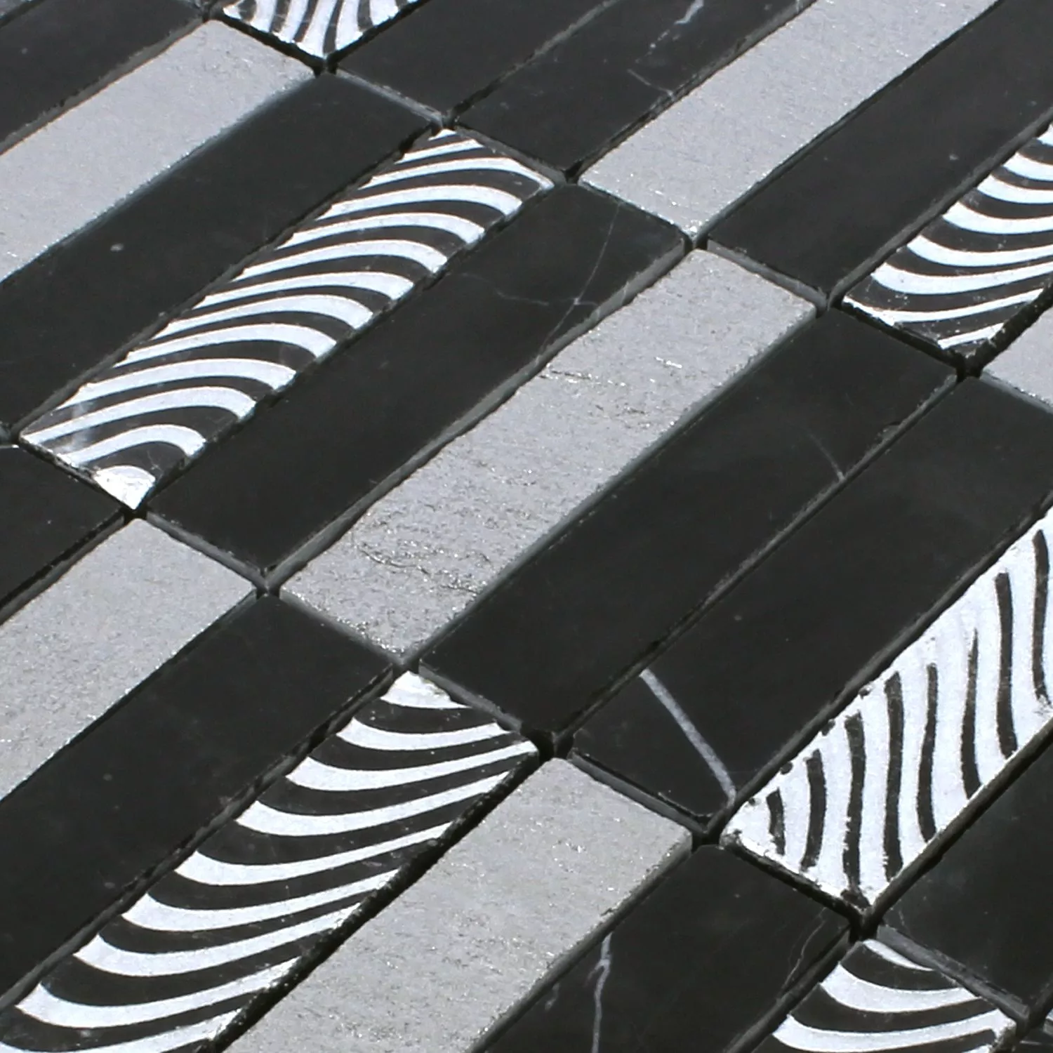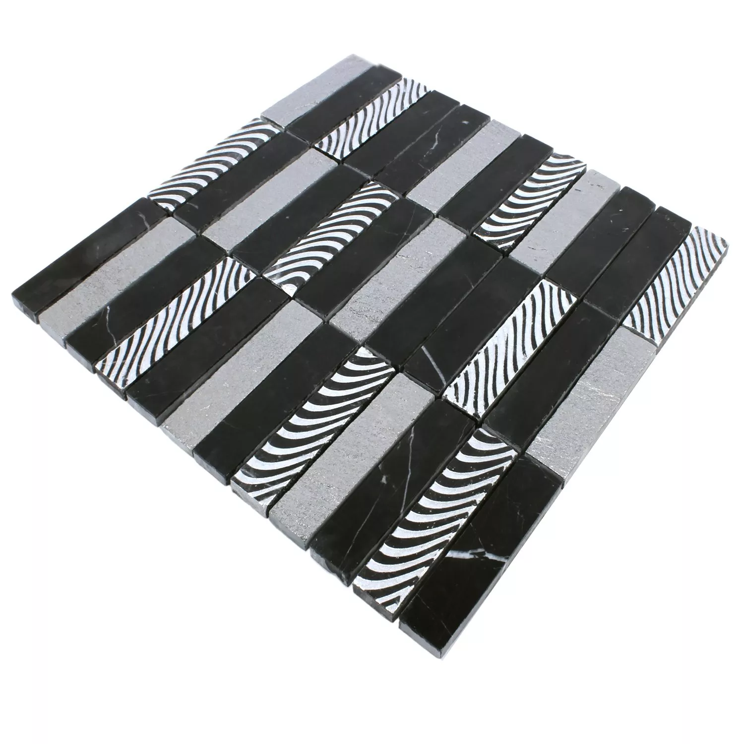 Тези готови за полагане плочки са залепени върху мрежа, което улеснява монтажа. Те са особено подходящи за кухненски гръбчета с плочки, стени и стени на душ кабини. Въпреки че не са подходящи за влажни помещения, изглеждат впечатляващо в сухи интериори.