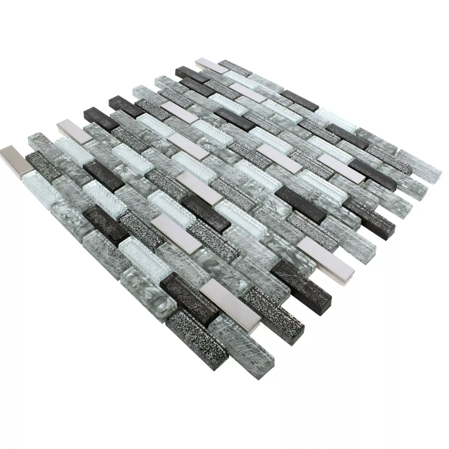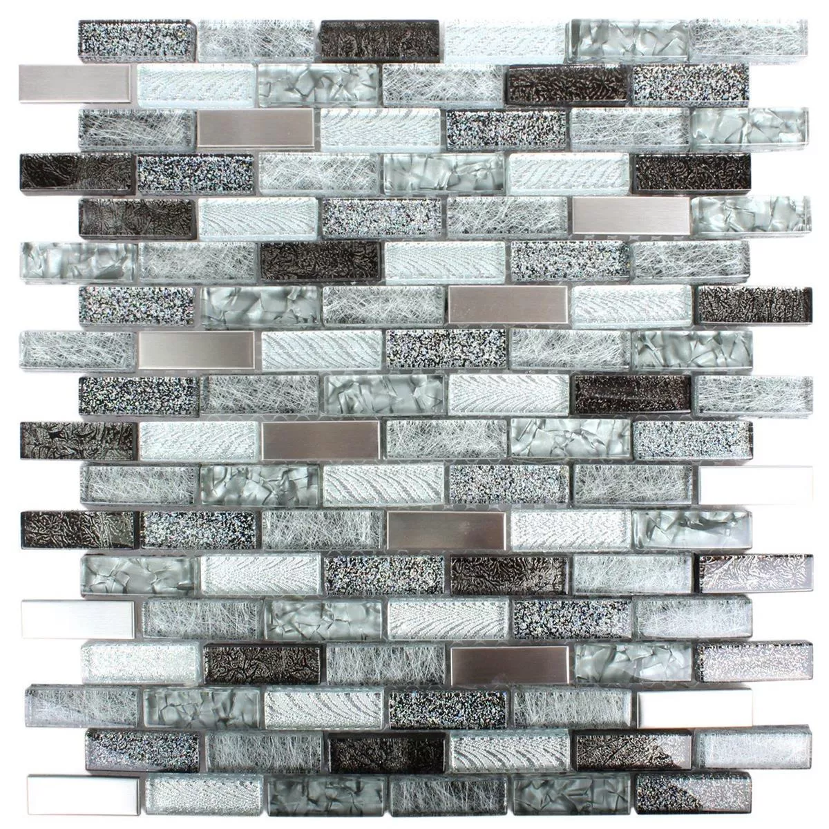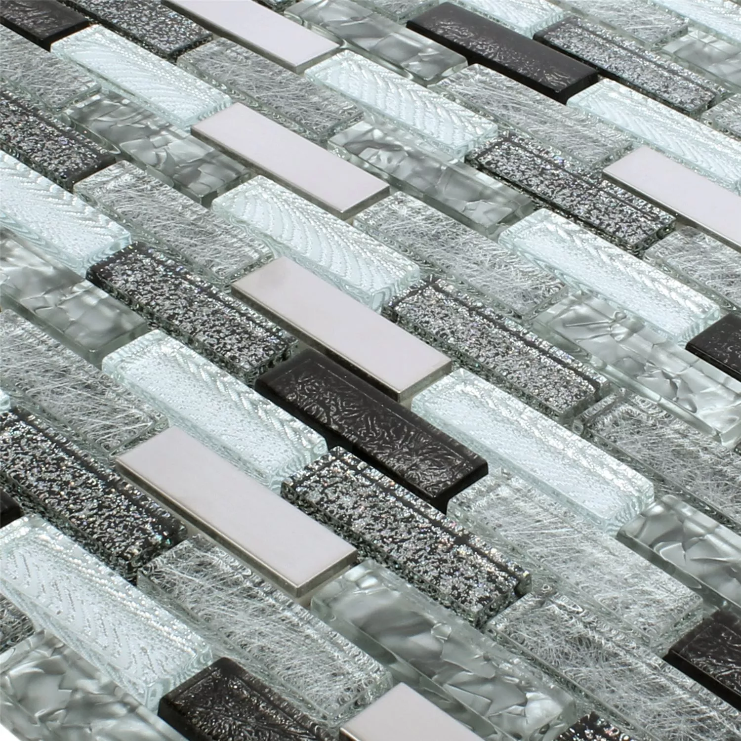 Правоъгълните метални и стъклени мозаечни плочки са перфектният материал за облицовка на стени. Черната и сива повърхност от стъкло и метал го правят идеален за това. Те обаче не са предназначени за мокри помещения.