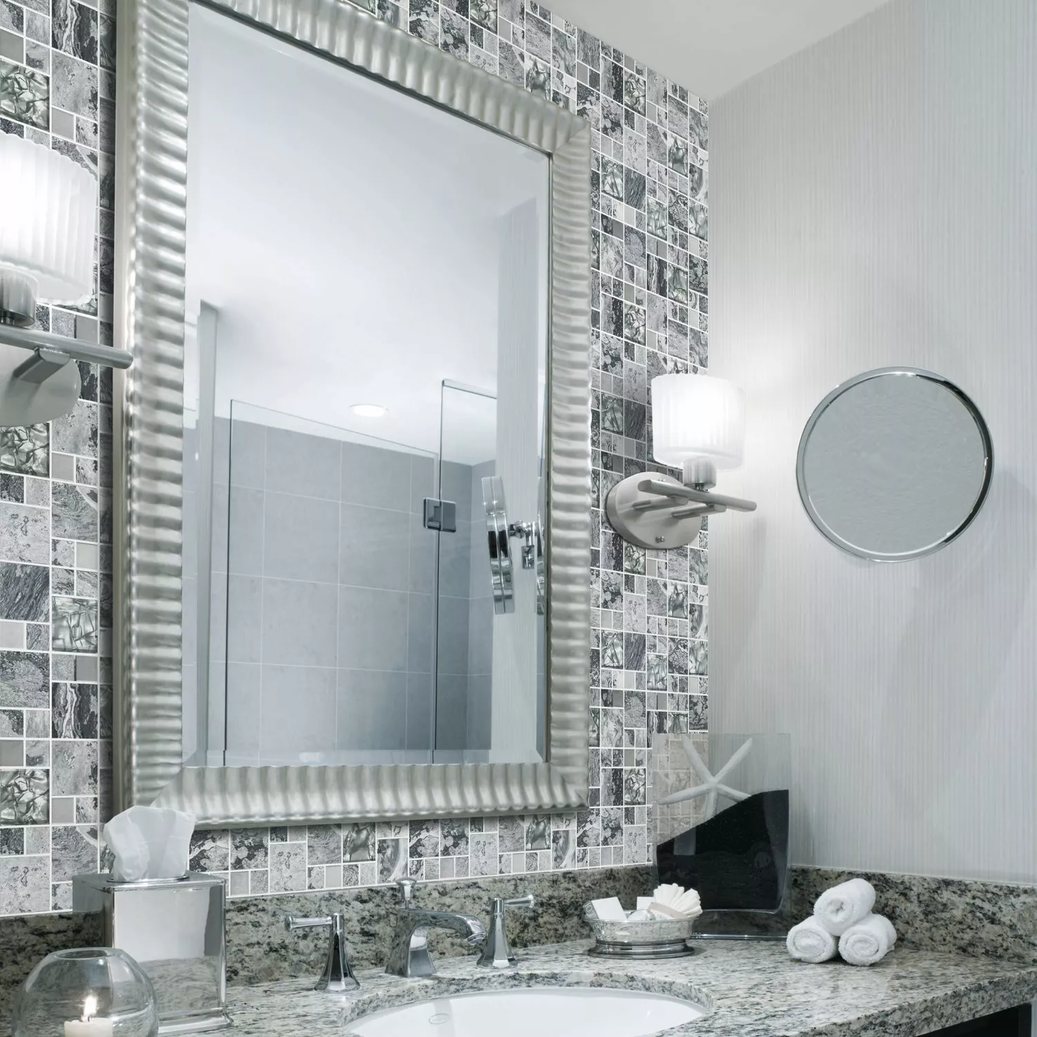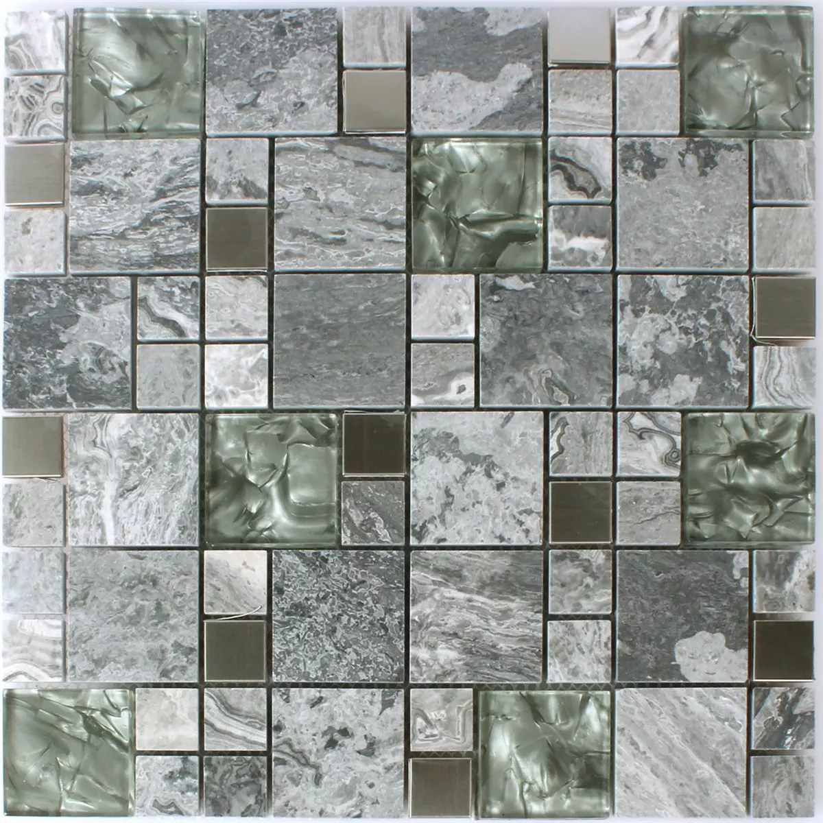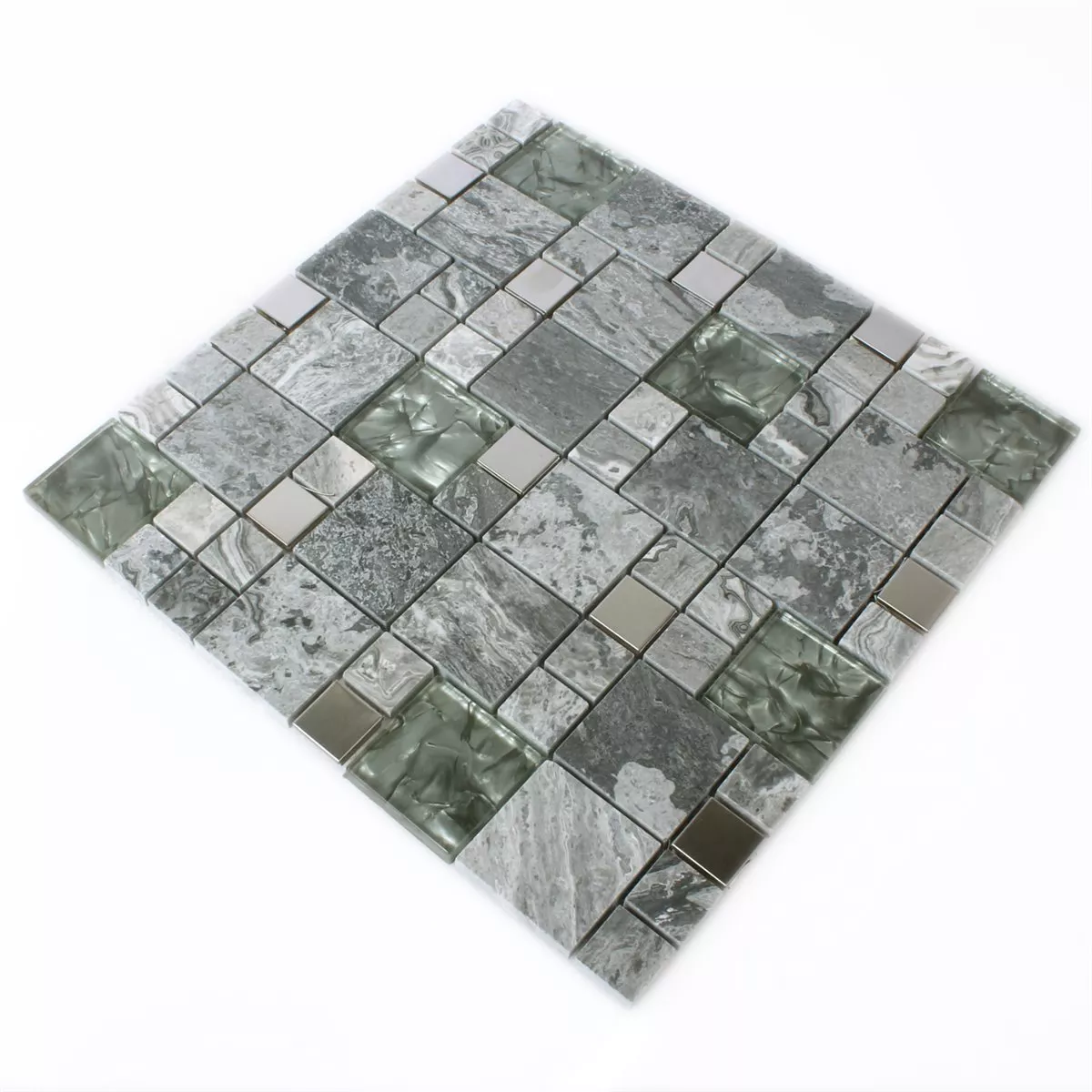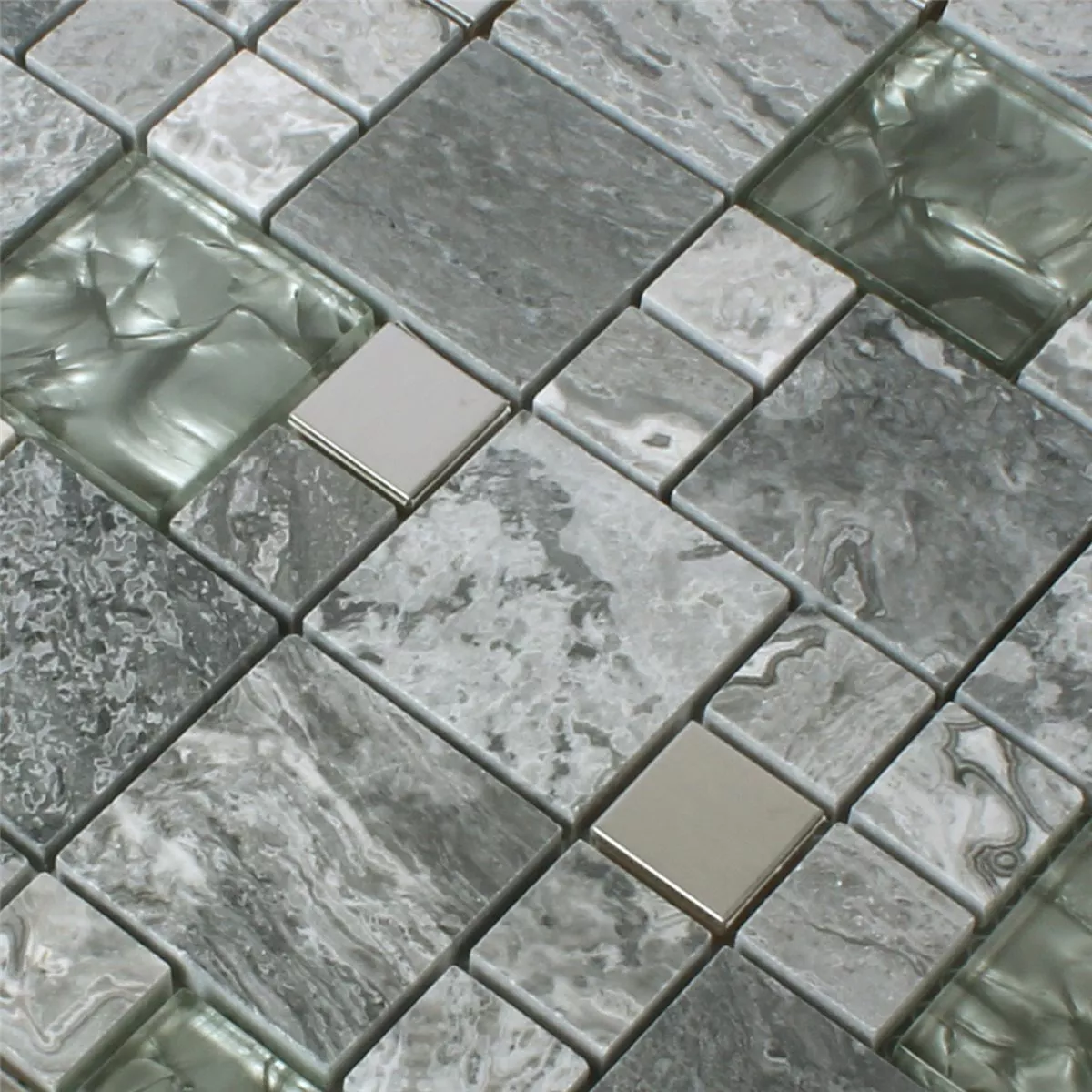 Mозаечни Плочки Mетал Стъклена Чаша Естествен Kамък Mix Сив Сребро