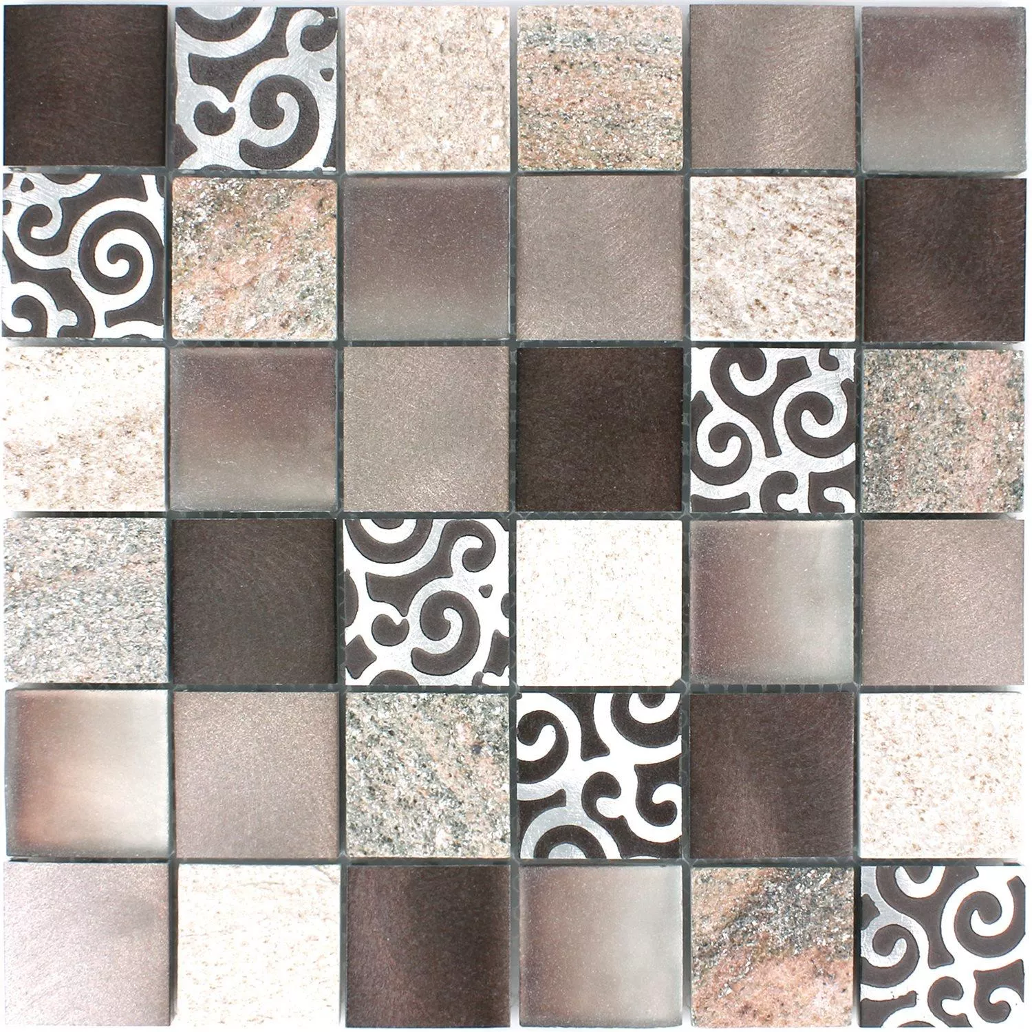 Mозаечни Плочки Стъклена Чаша Естествен Kамък Алуминий Valdivia Kафяво