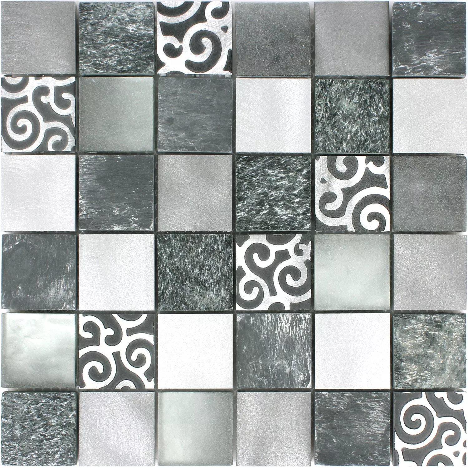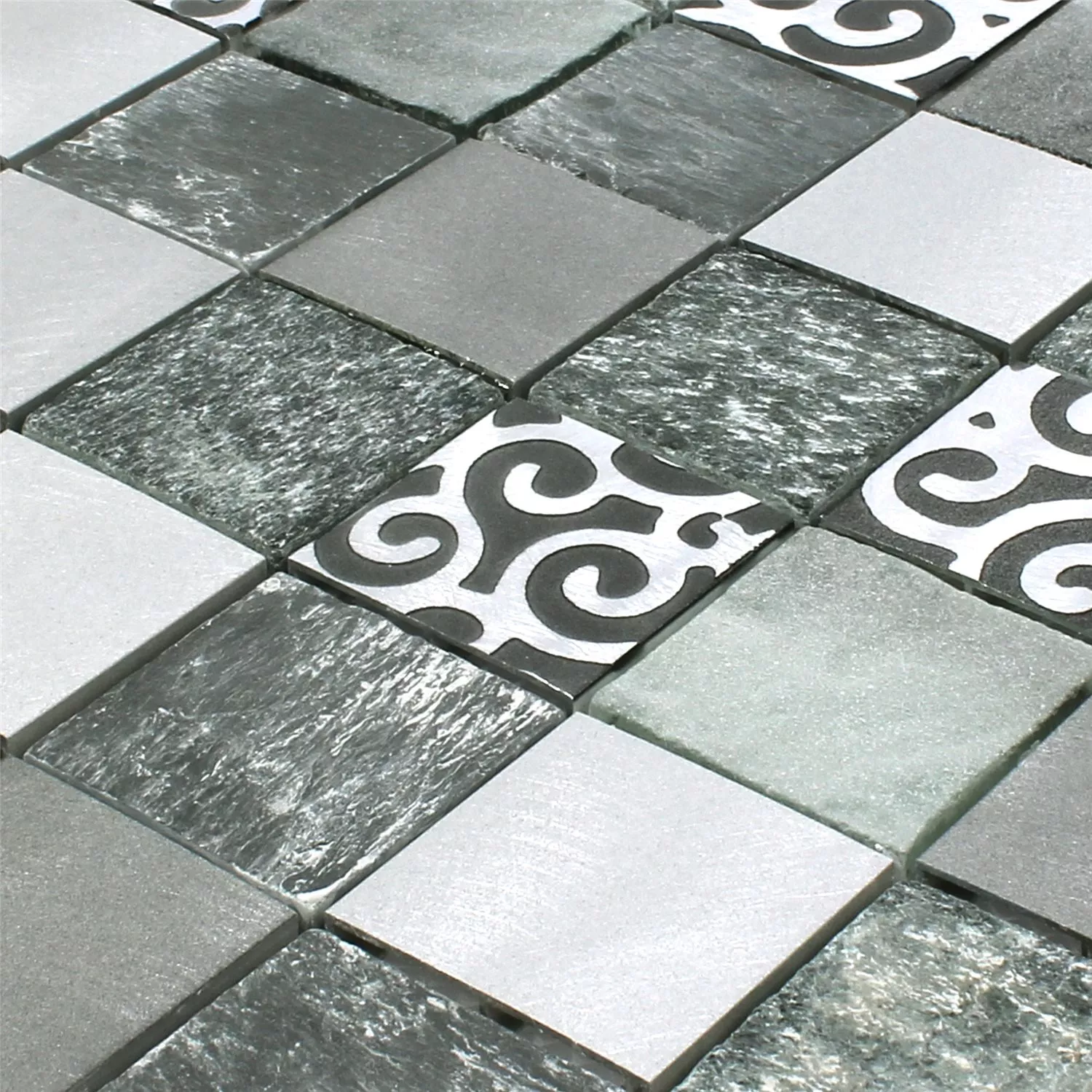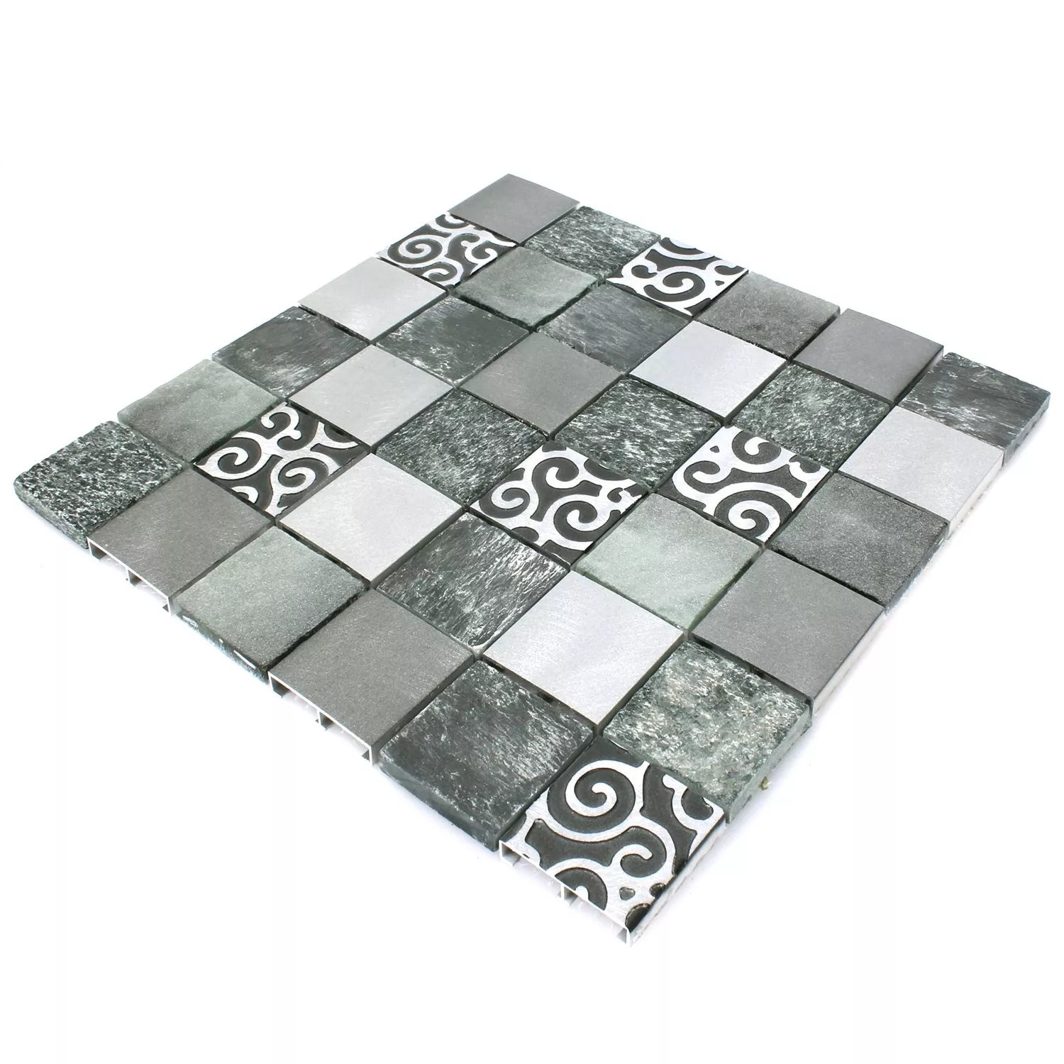 Mозаечни Плочки Стъклена Чаша Естествен Kамък Алуминий Valdivia Сив