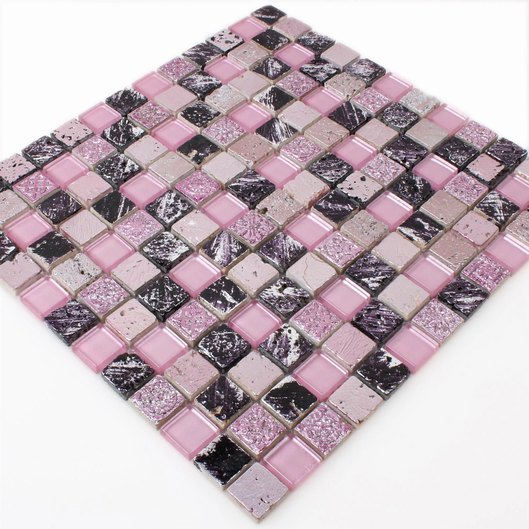 Mозаечни Плочки Стъклена Чаша Смола Естествен Kамък Розово Mix