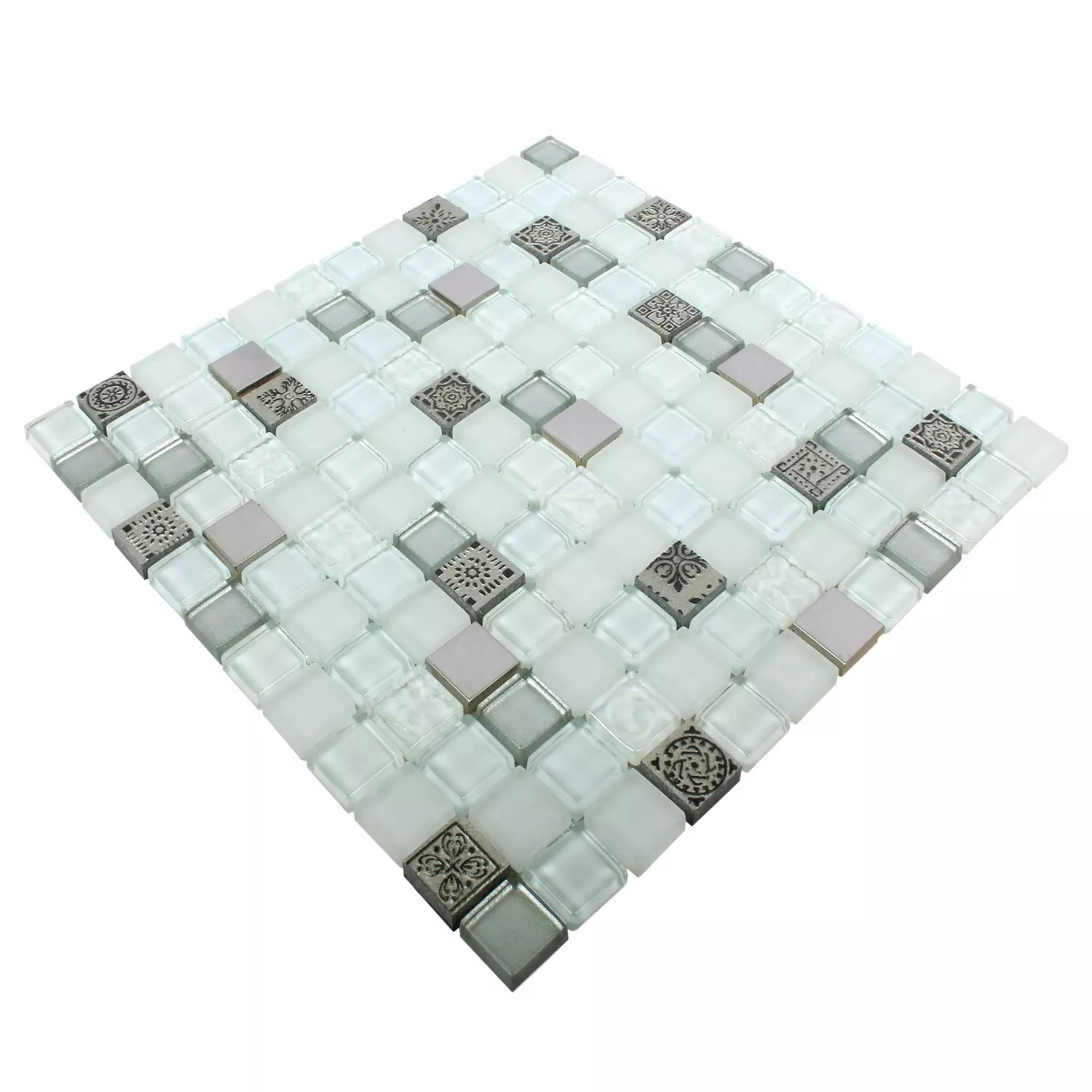 Блестящо, матово и изчеткано са трите покрития на материала за тази шикозна серия. Мозаечните плочки са отчасти изработени от метал и отчасти от стъкло. Сместа се приготвя по такъв начин, че да се създаде неравна повърхност за целия под. Така че гледането на тези плочки винаги е вълнуващо и изненадващо. Всички плочки са изработени в квадратна форма. За да могат да се полагат бързо и лесно, отделните камъни бяха залепени върху носещ материал. Готовите постелки просто трябва да бъдат залепени на пода.