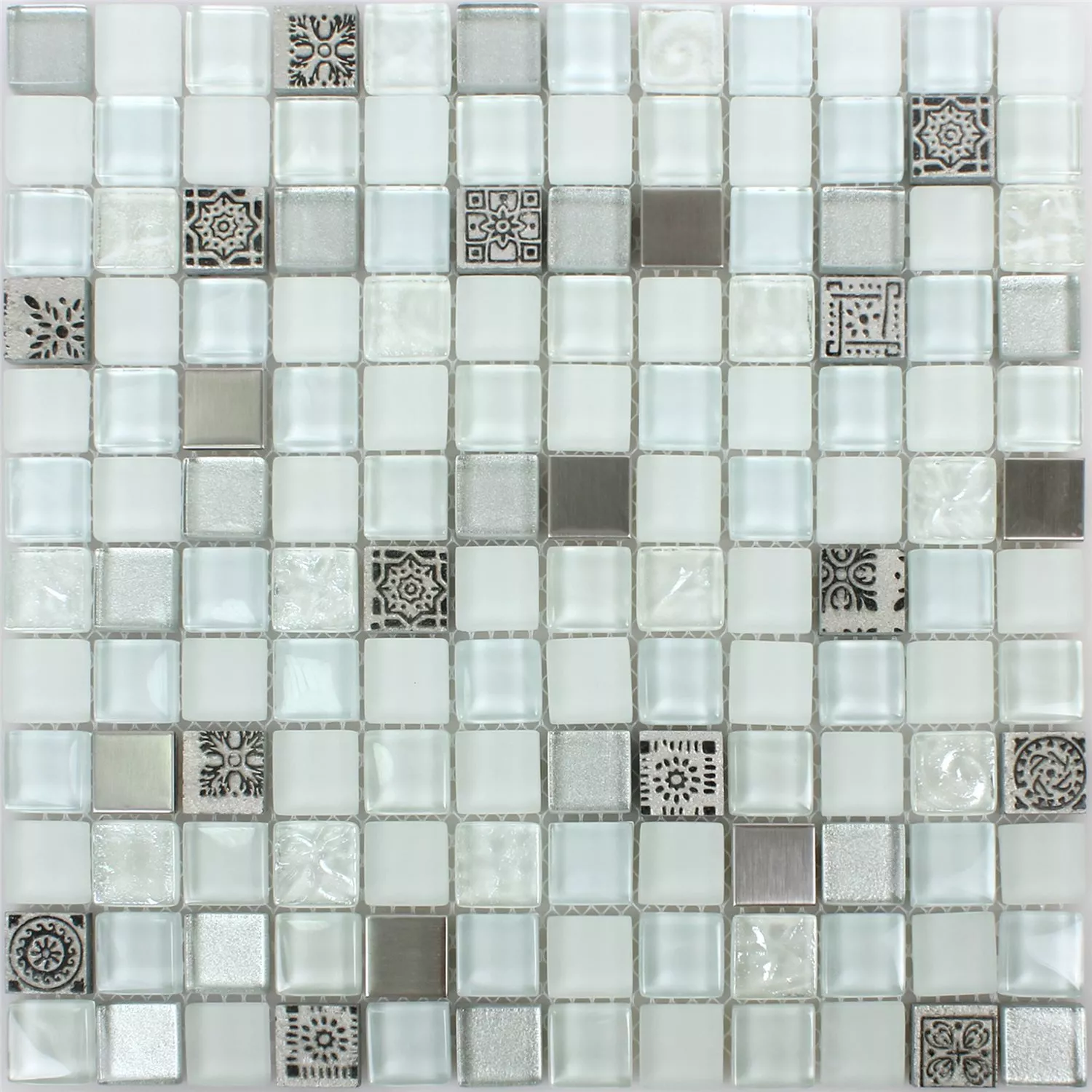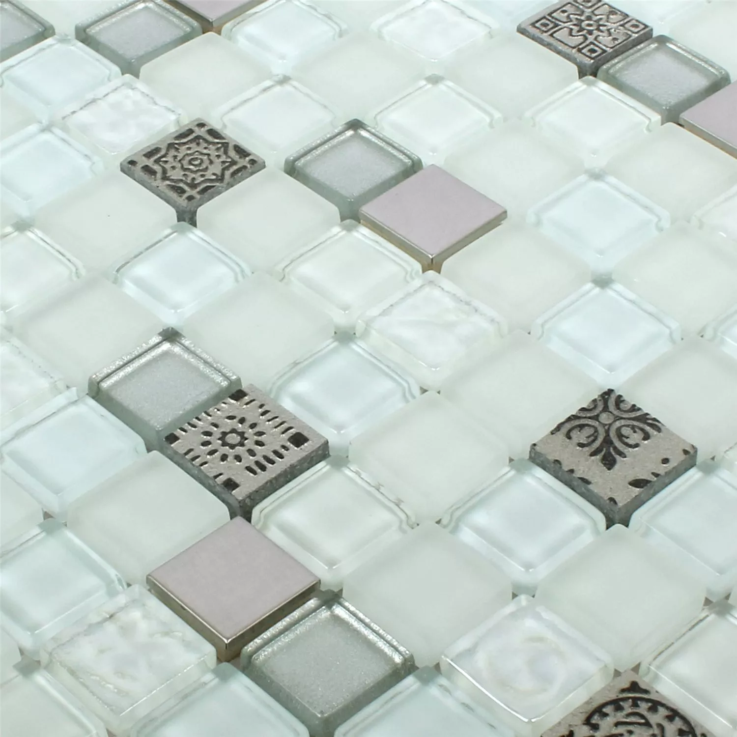 Mозаечни Плочки Стъклена Чаша Смола Неръждаема Cтомана Mix Gramos Бяло