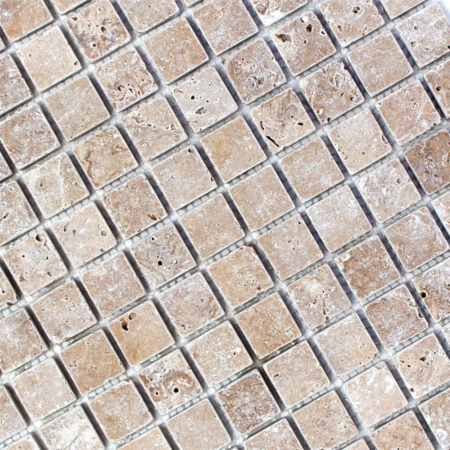 Мозаечните плочки Travertine Patara Noce 23 са изработени от земна седиментна скала, образувана от процес на бързо утаяване на калциев карбонат в устието на горещи извори или във варовикови пещери. Травертин Patara Noce често има влакнест или концентриран вид и се предлага в бели, кафяви, кремави и ръждиви разновидности. Тези плочки от естествен камък внасят уникална топлина в кухни, дневни и бани. Травертинът често се използва в съвременните домове като естествен и стабилен строителен материал.