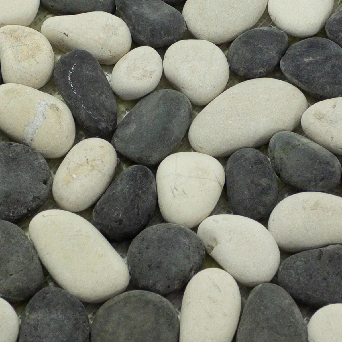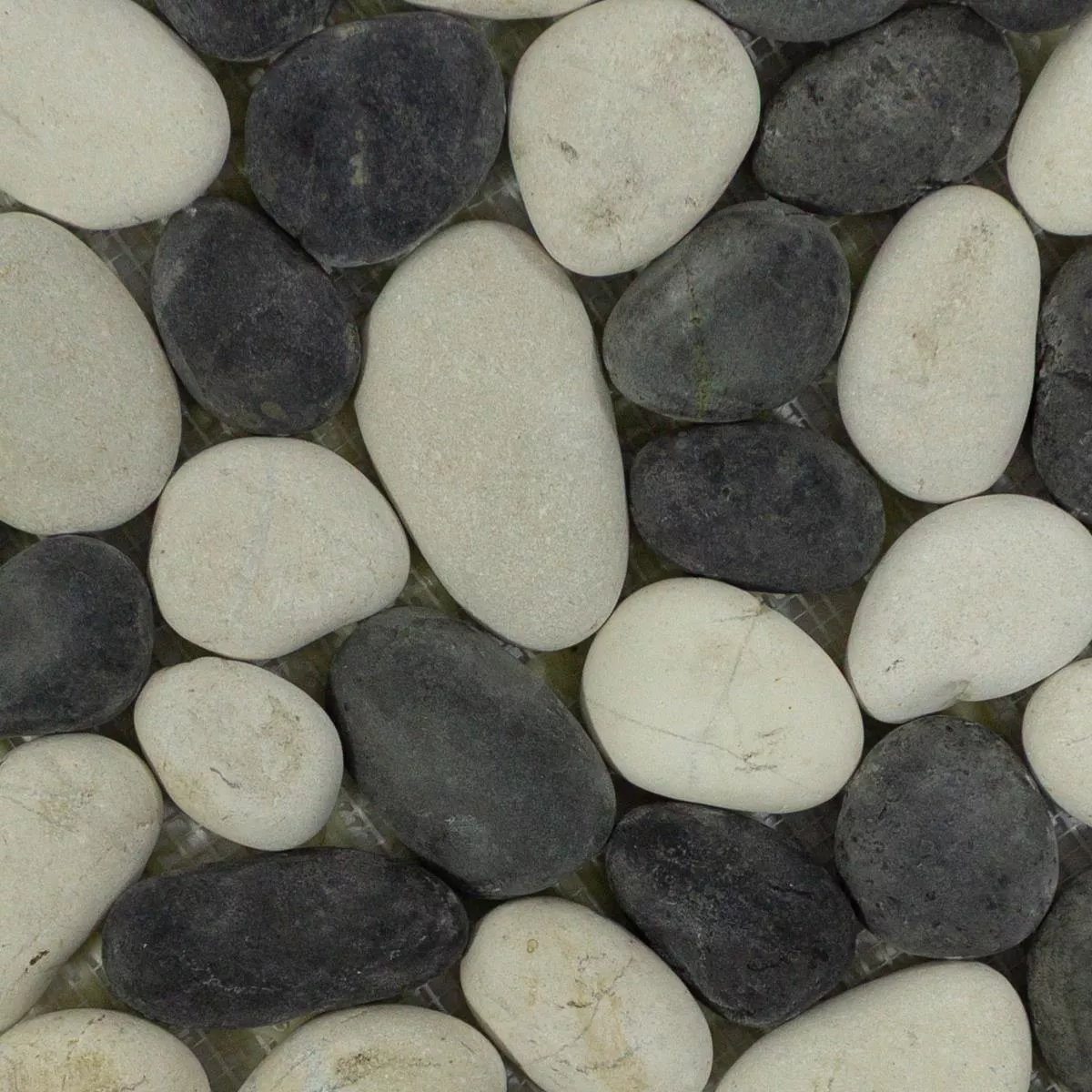 Камъчестата мозайка Xanthos Black White е особено красива като покритие на стена или на пода. Малките плочки са изработени изцяло от естествен камък. Камъкът е изсечен и коригиран така, че всички камъни да са приблизително еднакви по размер. Завладяващата шикозна форма освежава всяка баня. Освен това се предлага и комбинация от двете. Това е може би най-красивият начин за използване на тези камъни. Мозаечните плочки се доставят напълно представени върху носещ слой. Това означава, че те могат лесно да бъдат положени на желаното място, дори и от обикновени хора. Камъните могат да се полагат както на пода, така и на стената. Във влажни помещения фугите определено трябва да бъдат затворени. Светлата смес за фуги е идеална тук като контраст. Това изглежда особено добре с черните плочки, но може да се използва и всеки друг цвят. Мозаечните плочки са лесни за поддръжка и могат да се третират с конвенционални почистващи продукти.
