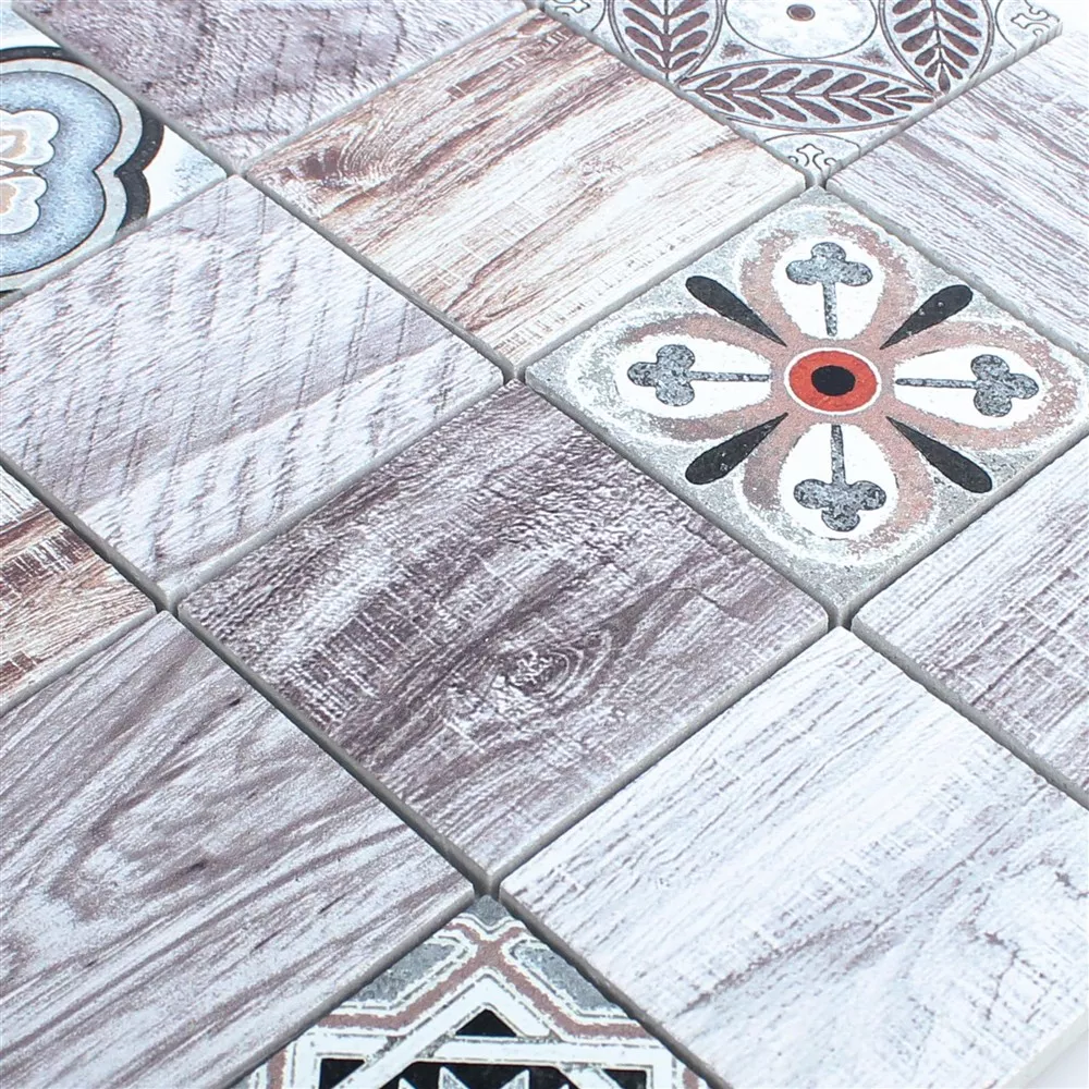 С креативния микс на мозайката Yaren можете да проектирате вашите подове и стени със стил. Мозаечната подложка с този дизайн включва светлокафяви плочки с различни, детайлни дървесни зърна. Реалистично имитира дървени подови дъски, дори се възпроизвеждат дупки, прорези и прорези в дървото. Четири допълнителни естествени камъка формират акцента на мозайката. Те са проектирани с различни десени плочки в класически стил. Черни, сини и оранжеви нюанси в тези плочки добавят живи акценти към ориентираната към дърво цветова схема. Когато се използват, мраморните плочки с еднакъв размер в тази оригинална комбинация позволяват единен и в същото време разнообразен цялостен външен вид. Всяка плочка в сместа има индивидуален повърхностен модел, който ви дава възможно най-голямата свобода при нейното подреждане, за да реализирате вашите лични идеи.