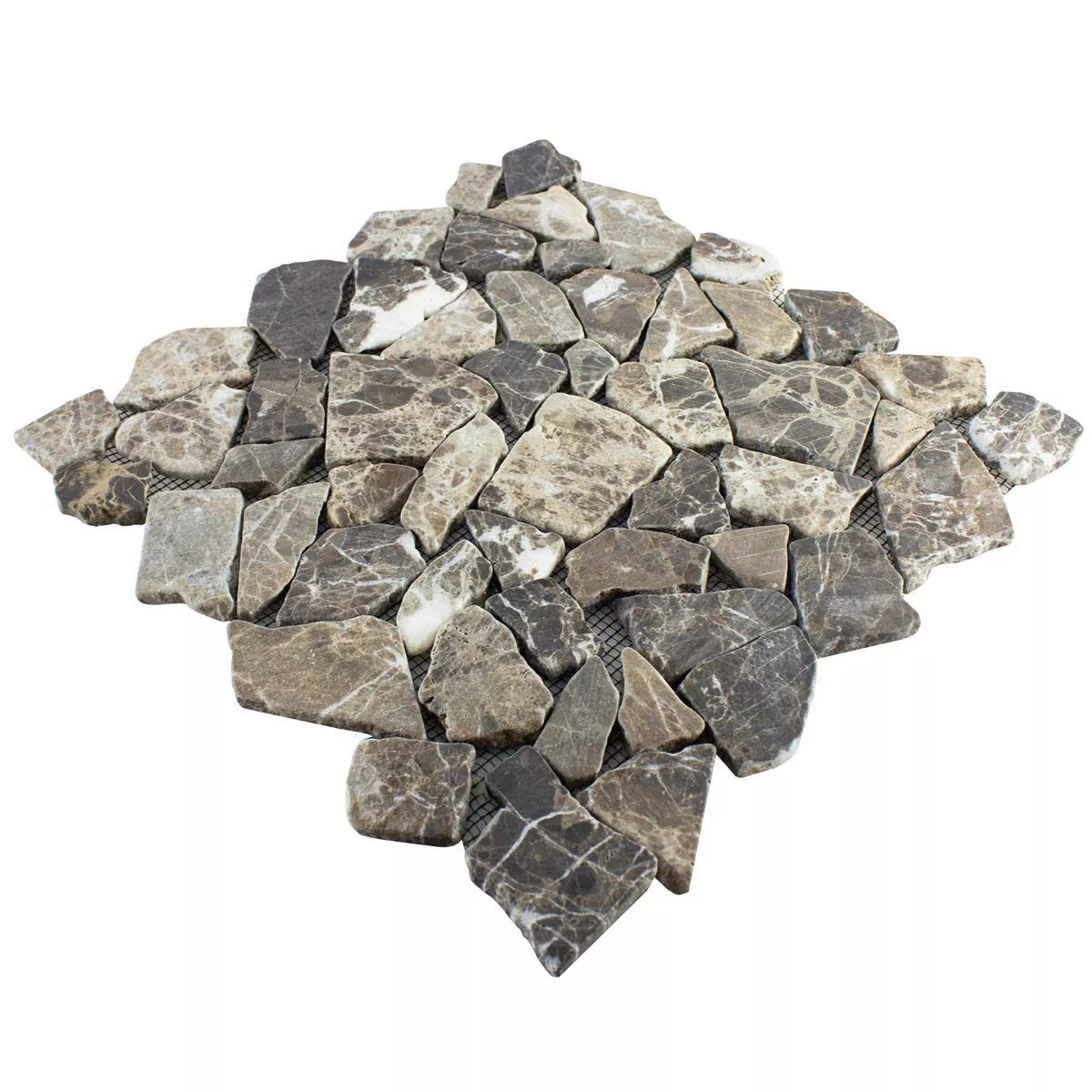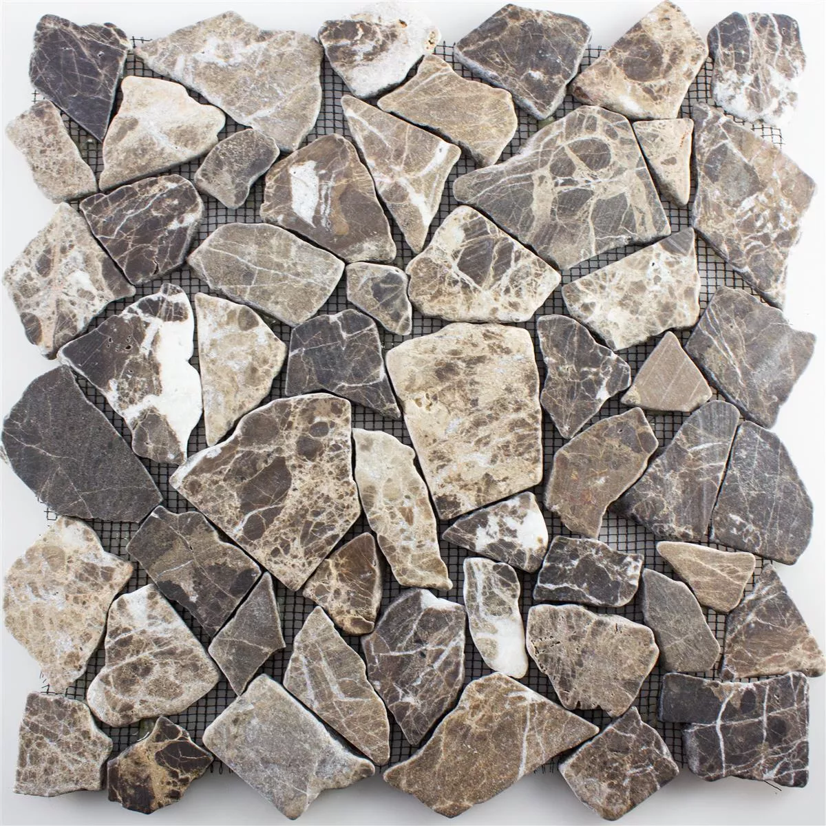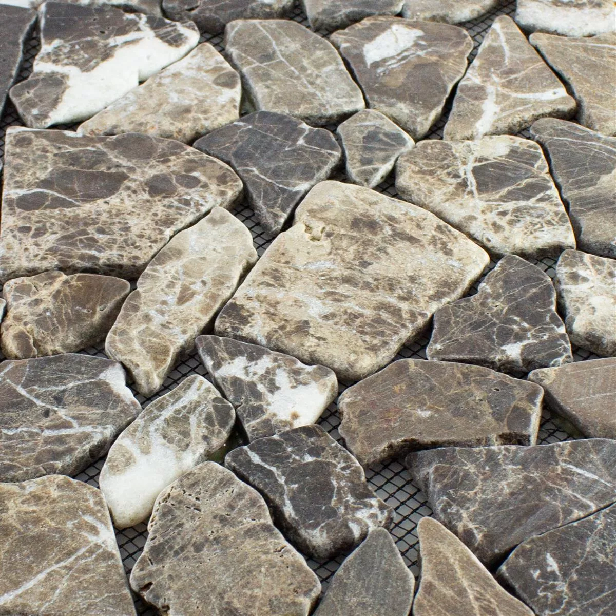Насладете се на вечната красота на мозайката от мраморна кариера Poseidon в топли кафяви и кастано тонове. Всяка подложка от тези елегантни мозаечни плочки покрива площ от 0,093 m² и е идеална за стенни и подови покрития както на закрито, така и на открито. С дебелина от 7 mm и променливи размери на камъните от 15 до 69 mm, тази мозайка предлага очарователна текстура и визуална дълбочина.