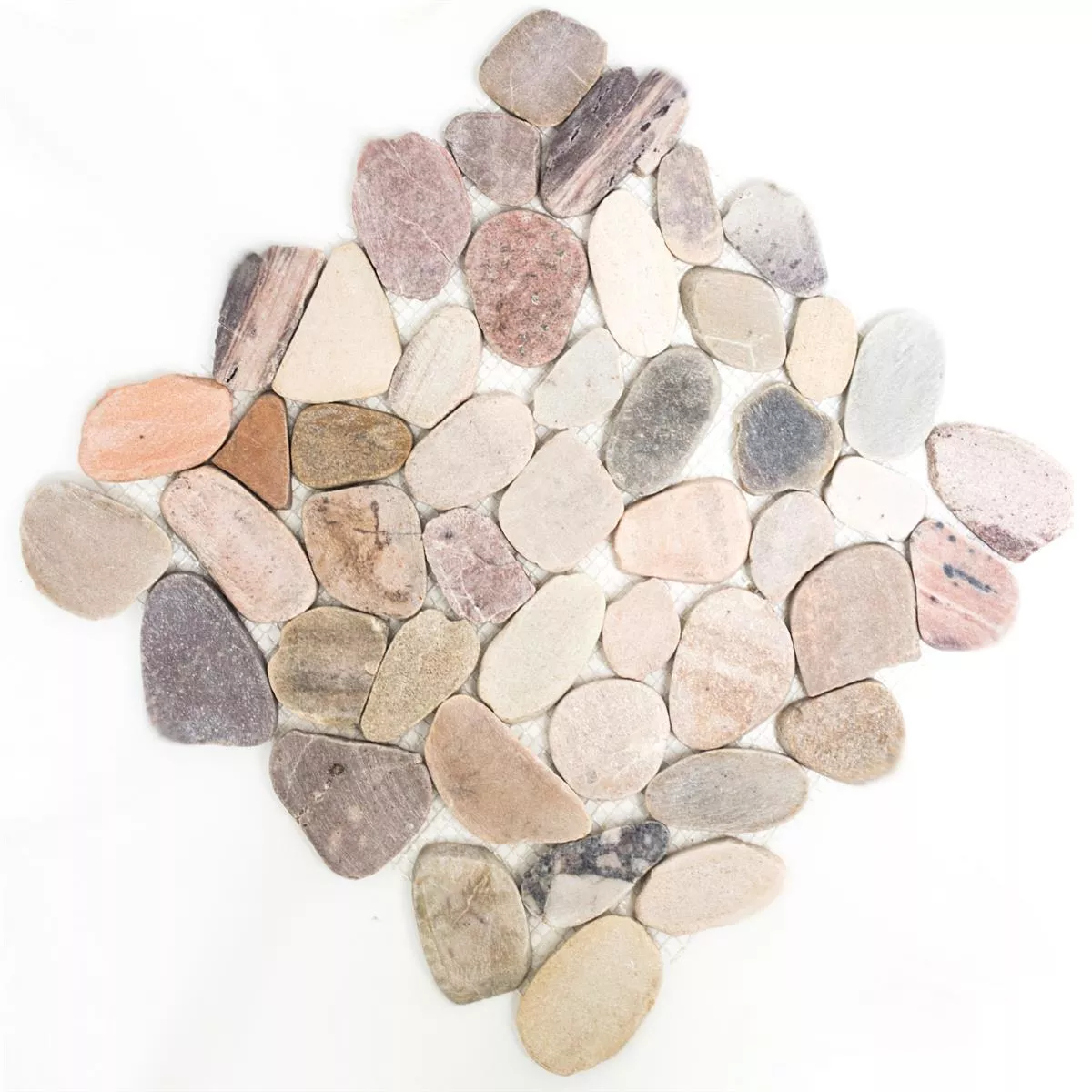 Lovely pebble mosaic sheets. Excellent quality. Warm red/grey/beige tones. Would recommend to others.