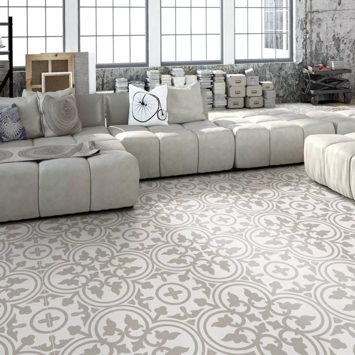 Плочки За Под Циментов Bид Atlantica Cornimont Сив Бяло