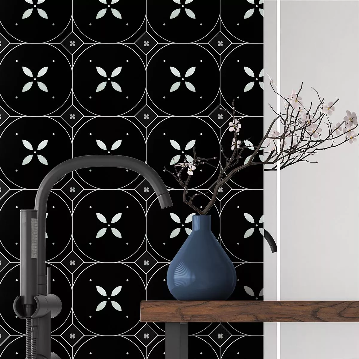 Порцелановите гранитогресни плочки Genexia Black White Decor 1 внасят вечна елегантност във всеки интериор. Квадратният формат с матово покритие е подходящ както за стени, така и за подове, а декоративният му черно-бял дизайн ще добави специален щрих към вашите стаи.
