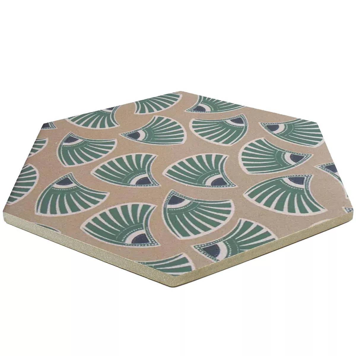 Порцелановите плочки “Modena Hexagon Decor 6” придават на стаята ви очарователна комбинация от флорални орнаменти в кафяво и зелено. С дебелина от 10 мм, те са идеални за мокри помещения, душове, бани, кухни, всекидневни и закрити помещения.