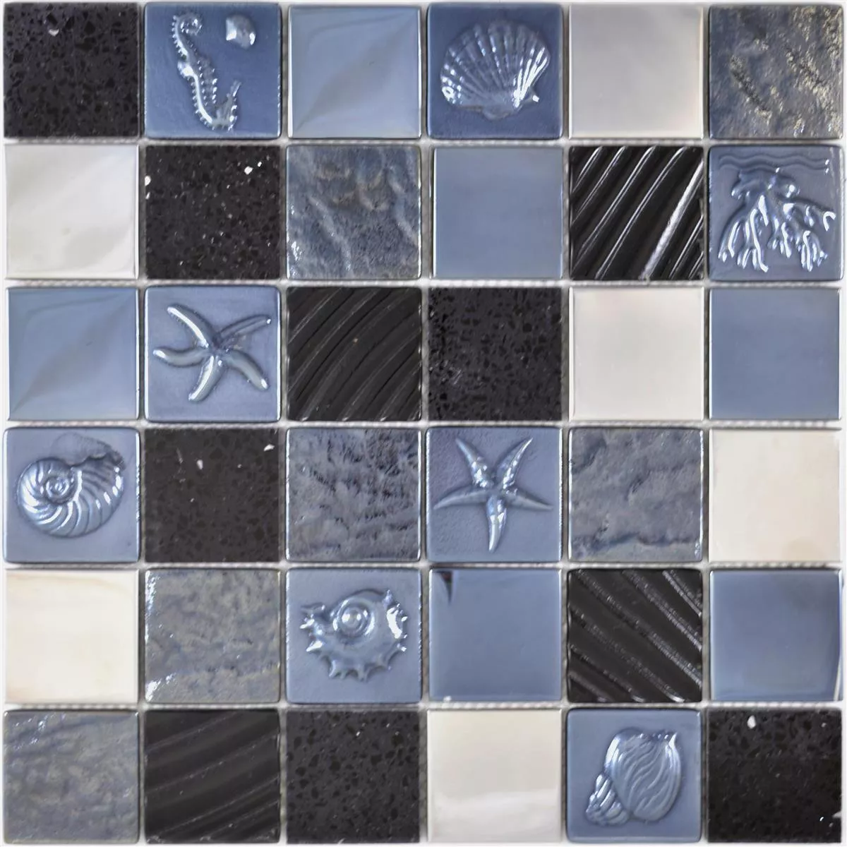 Стъклена Чаша Неръждаема Cтомана Естествен Kамък Mозаечни Плочки Emporia Черно Сребро