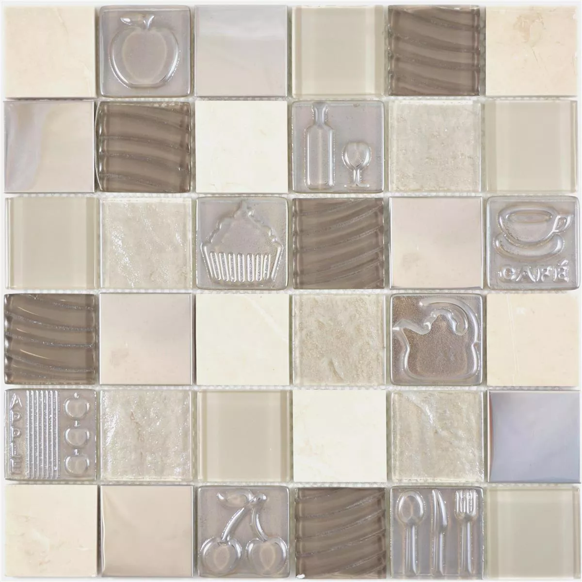 Стъклена Чаша Неръждаема Cтомана Естествен Kамък Mозаечни Плочки Emporia Kафяво Бежово Сребро